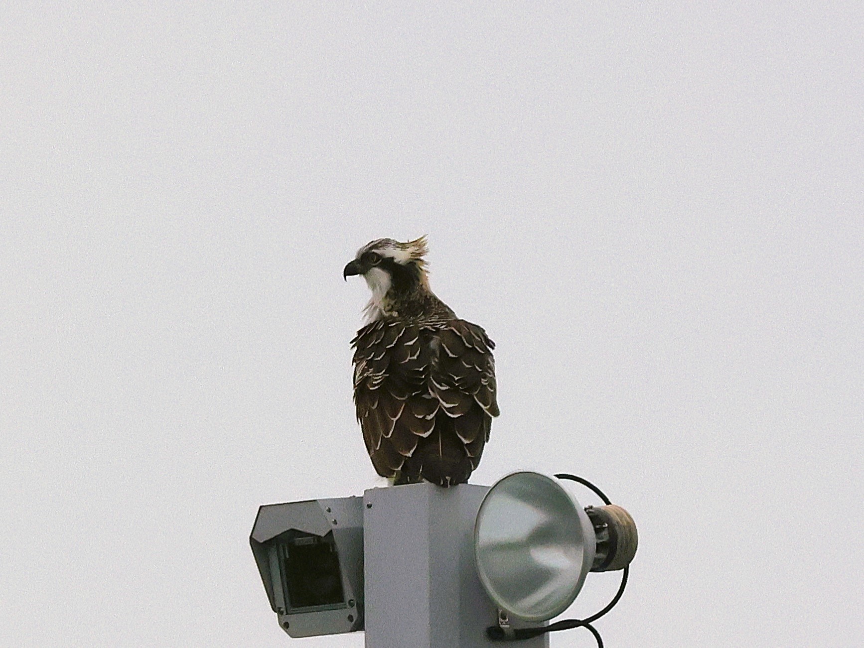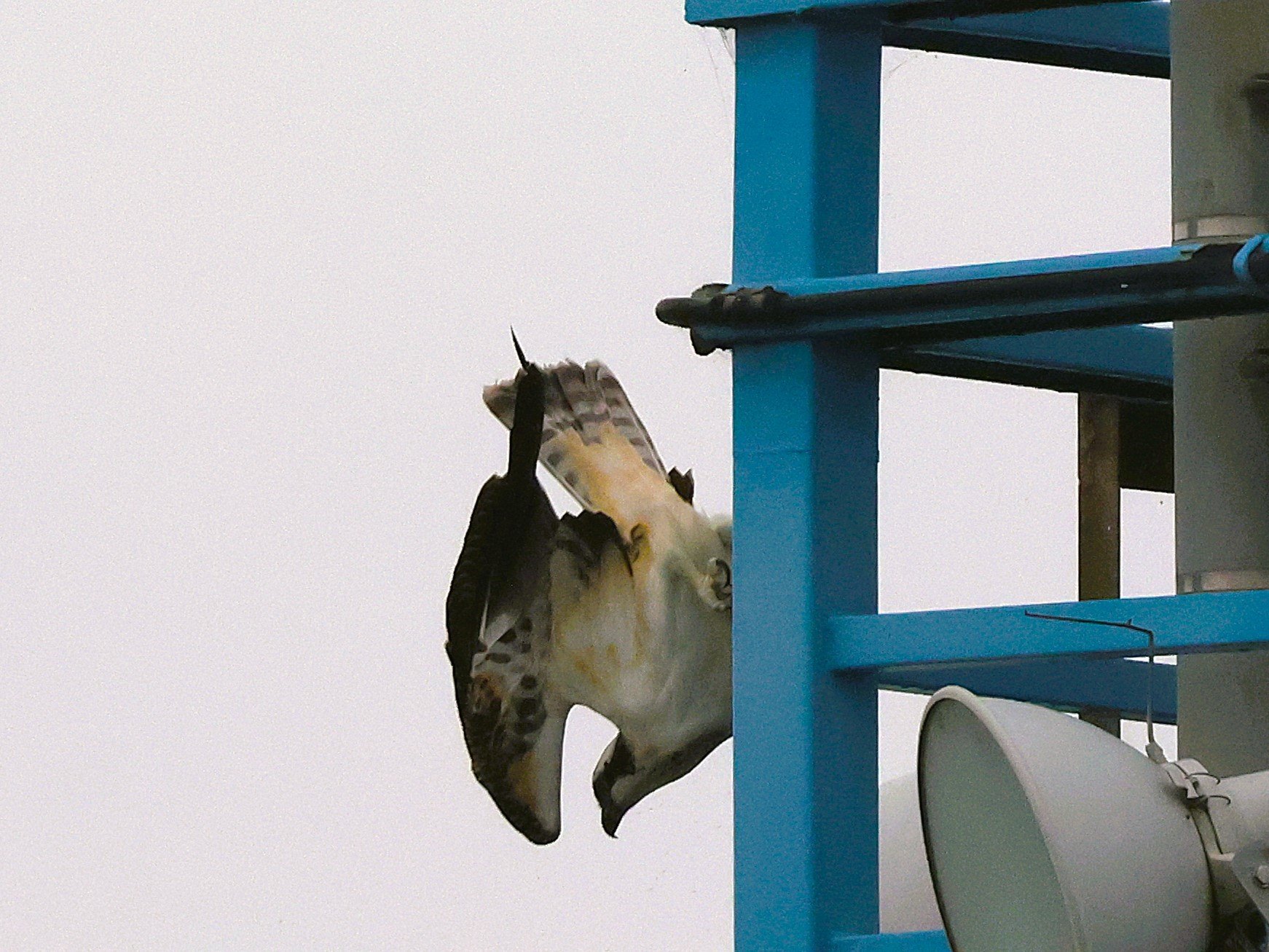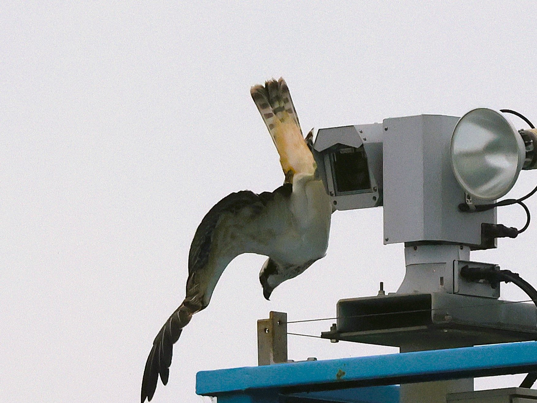 照明灯からの飛び出し作品は、照明灯に止まって居るミサゴの後ろ姿は、目に光が入って、羽が印象的です。