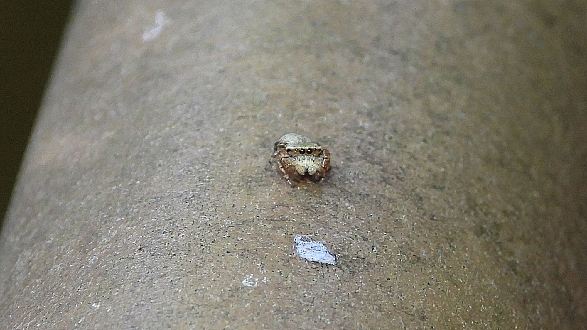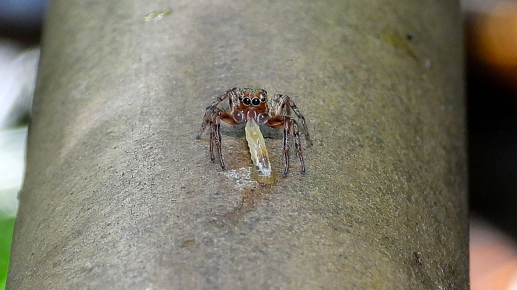 デーニッツハエトリ作品は、咥えているのは虫にも見えますが正体不明ですね。