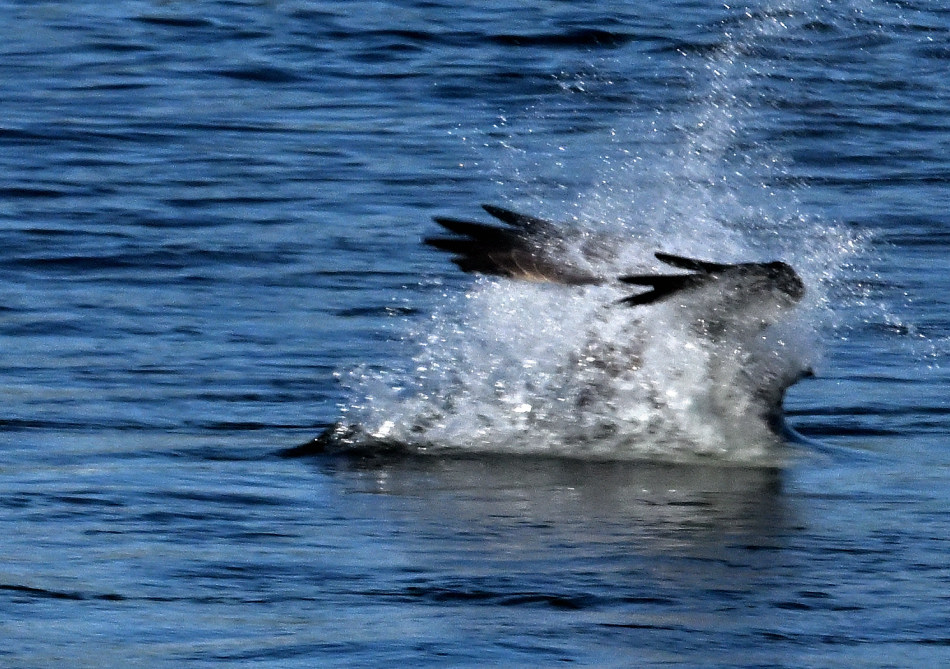 2番目の作品は、水面が青く、水飛沫が上がって、6羽が皆向かい合っていますね。