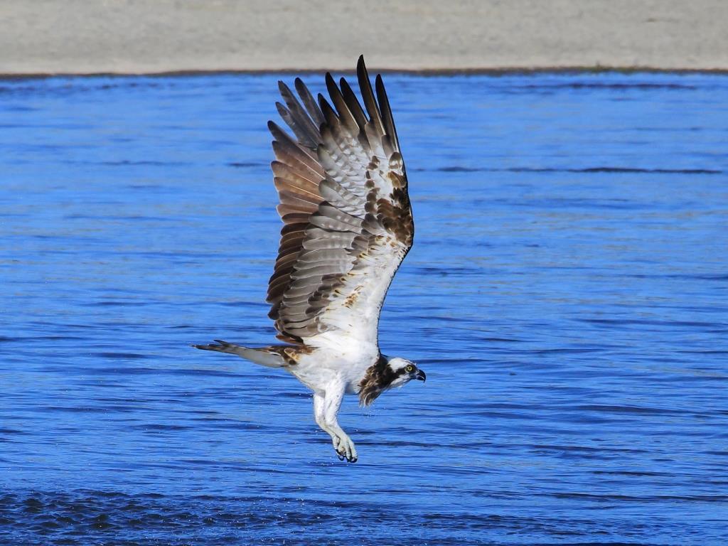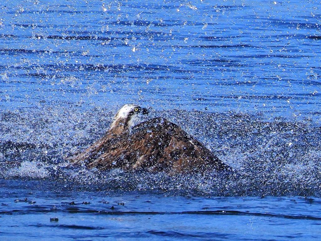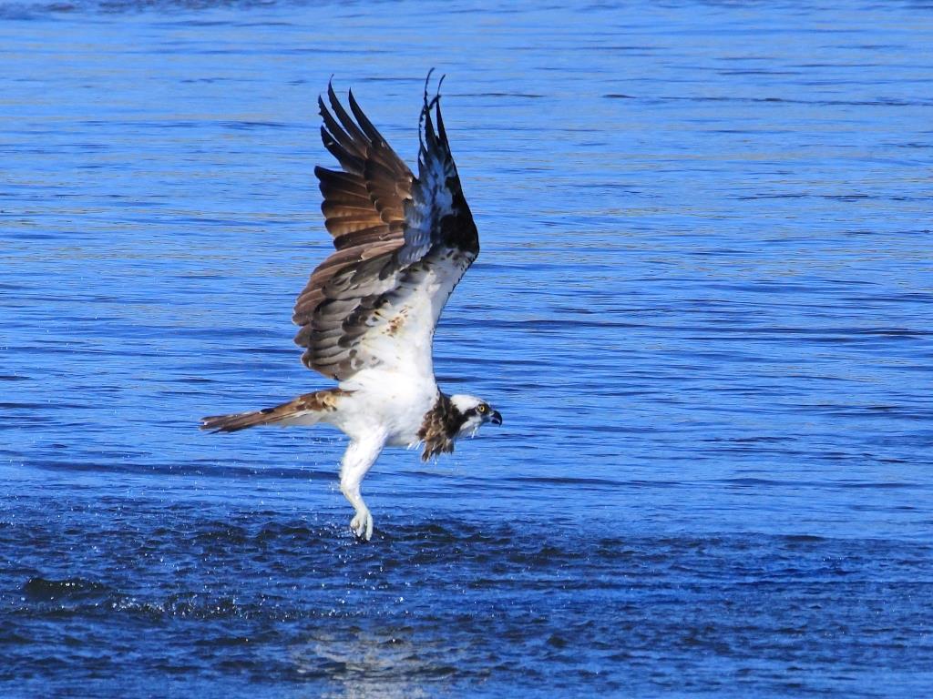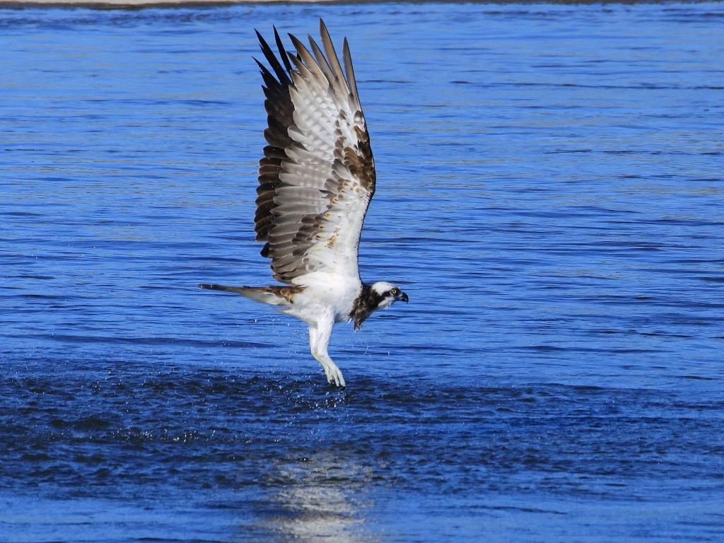 青空が水面に映えて、白いミサゴが足を伸ばして飛び込む瞬間は見応えがあります。