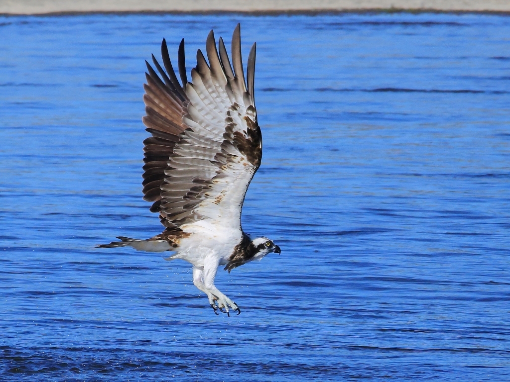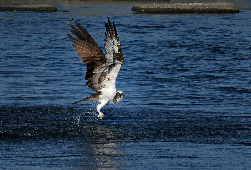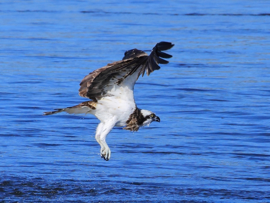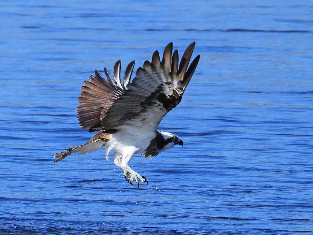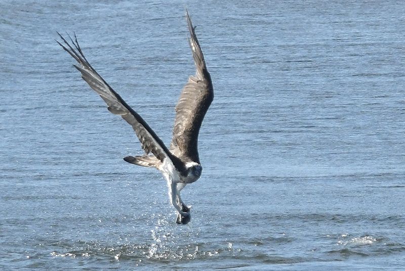 青空が水面に映えて、白いミサゴが足を伸ばして飛び込む瞬間は見応えがあります。