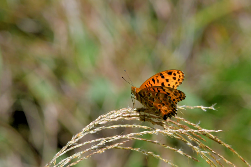 ツマグロヒョウモン♂作品は、バックが抜けたススキの穂に飛来した所を捉え、蝶がとても引き立っています。