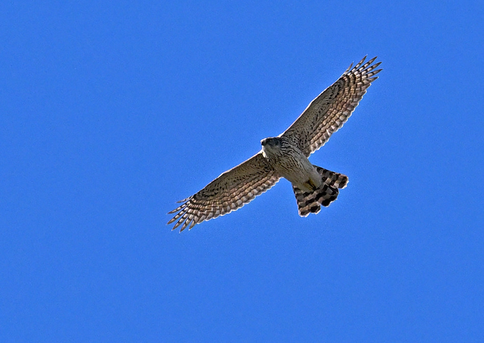 逆光の中を飛翔するオオタカ若、なかなか難しい〜〜