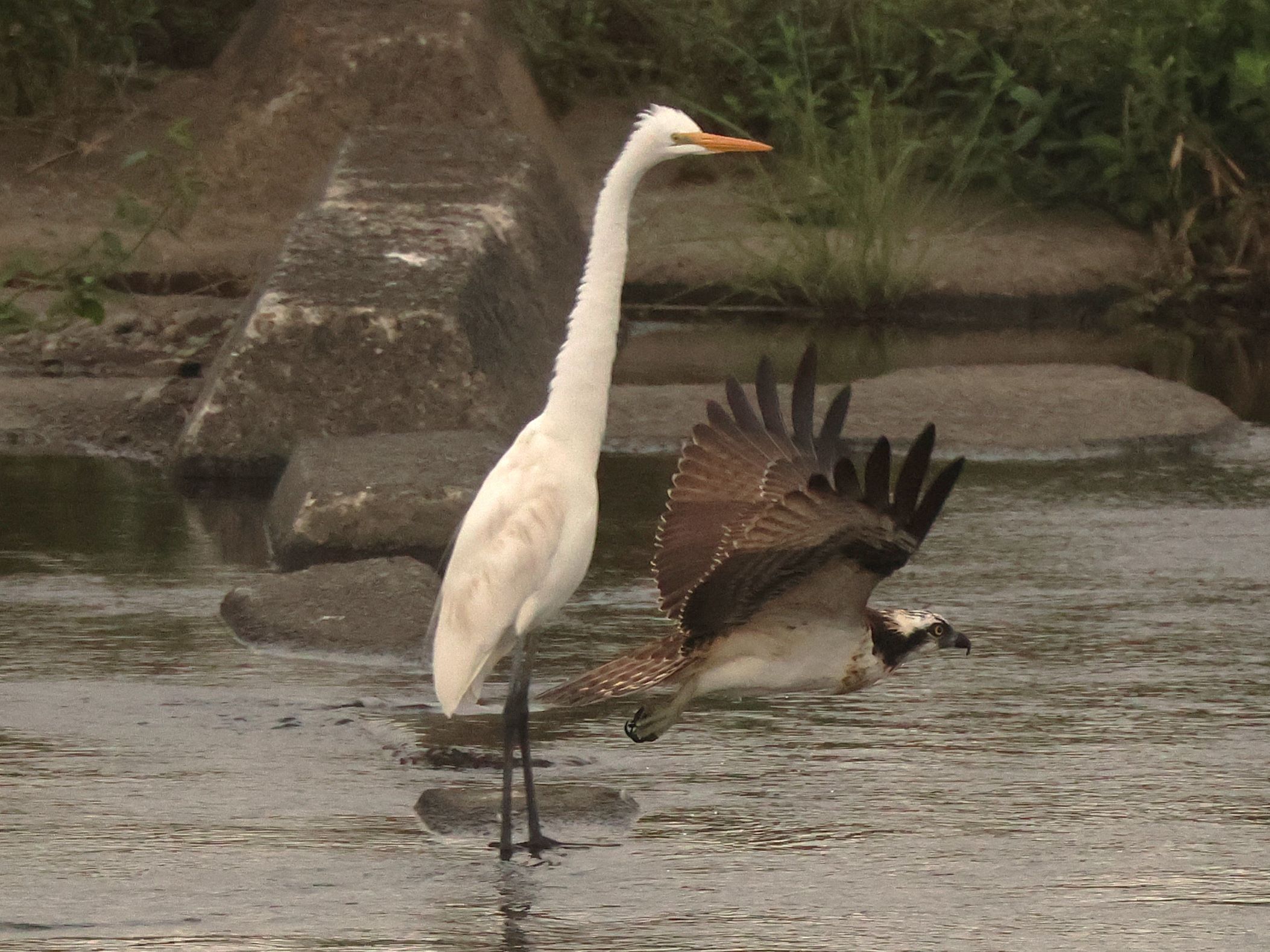 時々小雨が降る中、9時半頃にミサゴが飛来し、4〜5回川に飛び込みましたが鮎を掴めず、下流に飛び去ってしまいましたね。