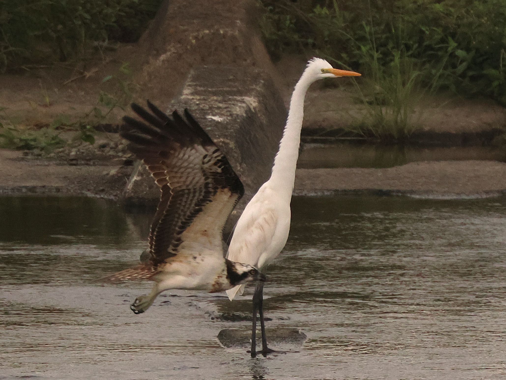 12時19分にミサゴ2羽が飛来し、目の前で旋回を繰り返したのですが、川に飛び込まず、低空で水飲みして飛び去りました。