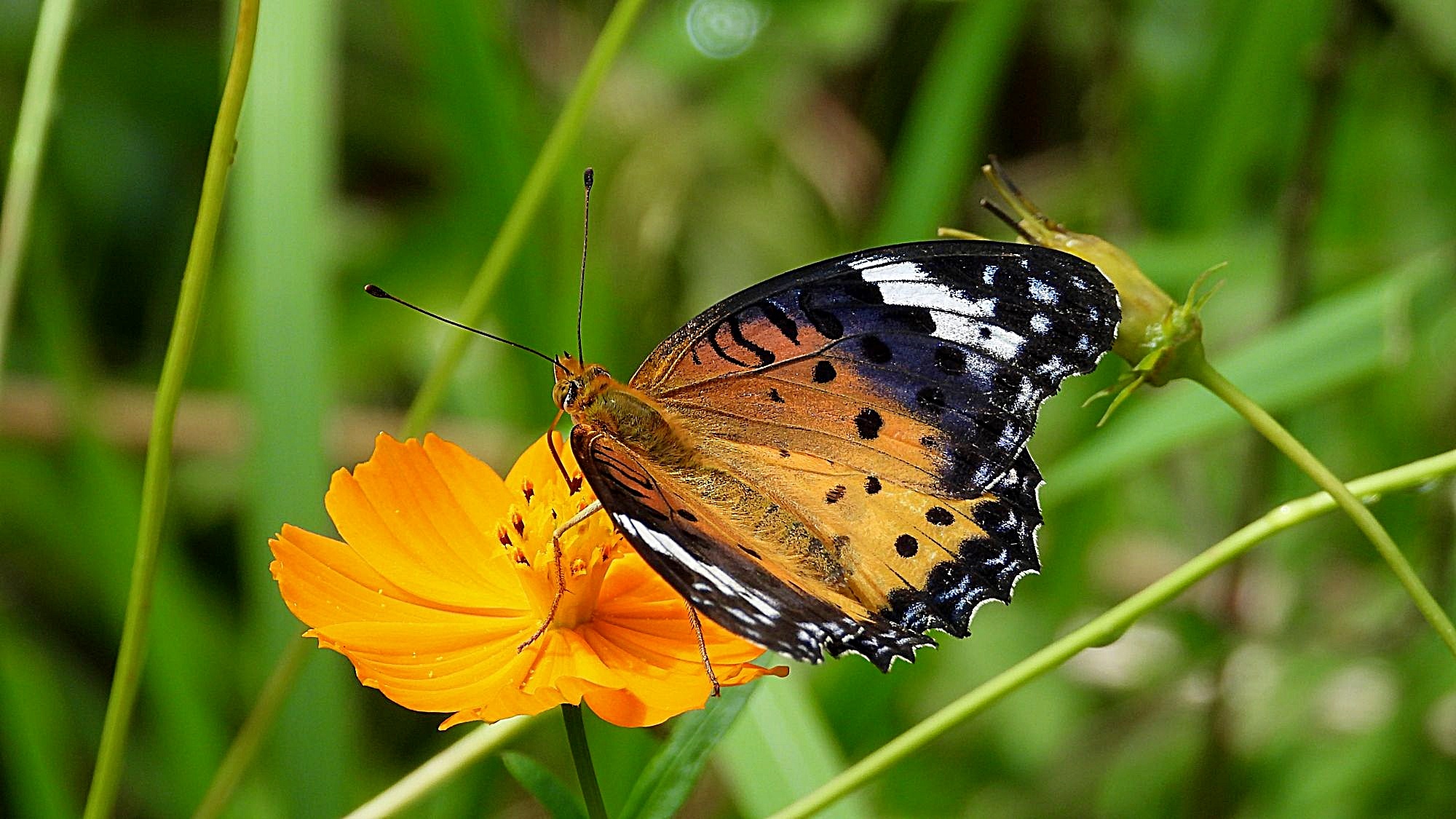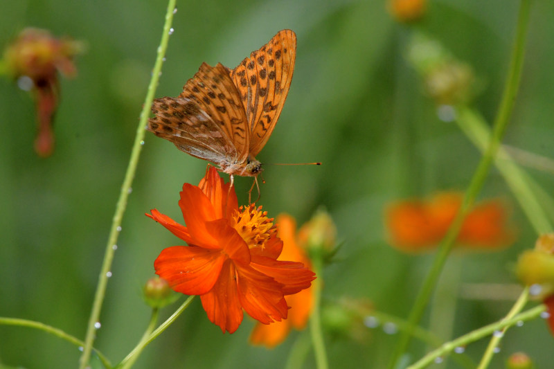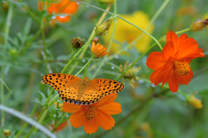 コスモスに、ツマグロヒョウモン♂や