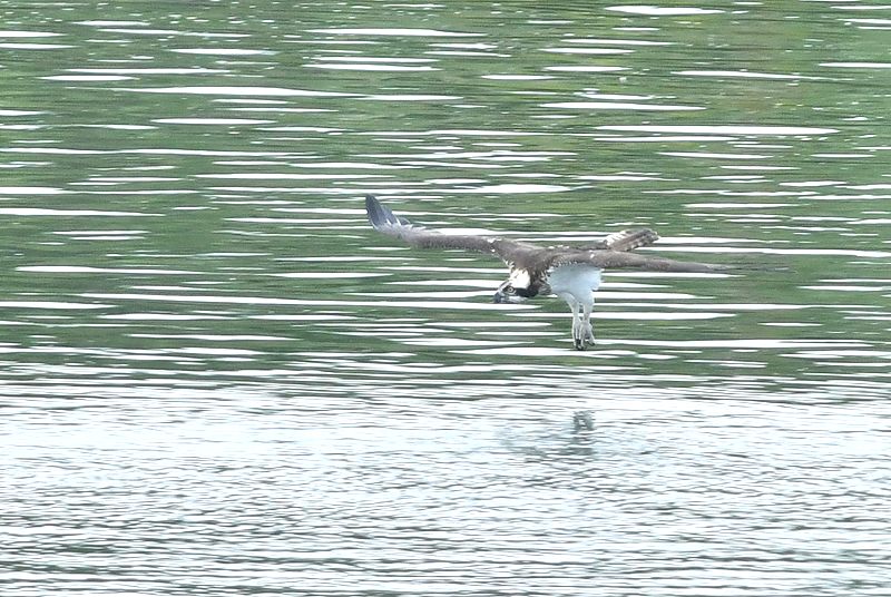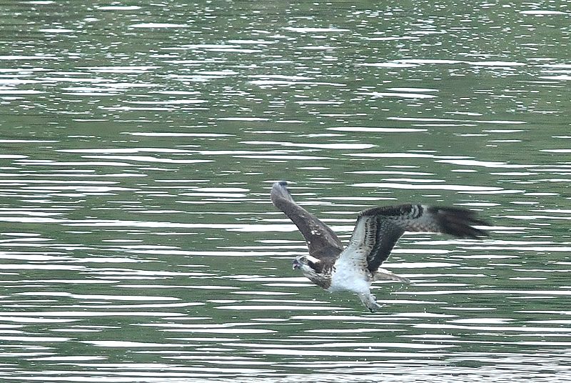 時々小雨が降りましたが、9時半頃にミサゴ若が飛来し、川に4〜5回飛び込んだのですが鮎を獲れずに下流に飛び去りました。