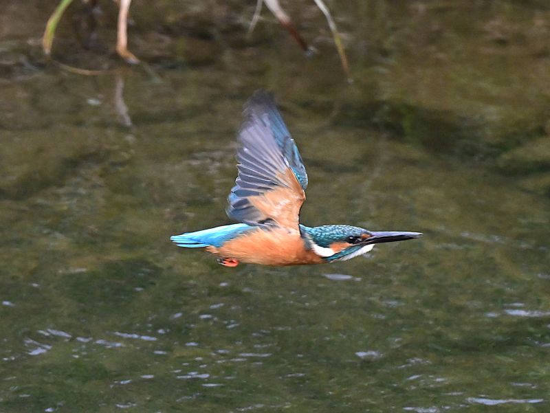 水面から飛び出した連続作品は、水面が波立って水滴が飛び散って、迫力満点で目にしっかり光が入って、羽が開いたり閉じたりしながらの飛翔場面は躍動感があり、今季初撮影にも拘らず、これだけしっかり撮られるのは技量の賜物です。