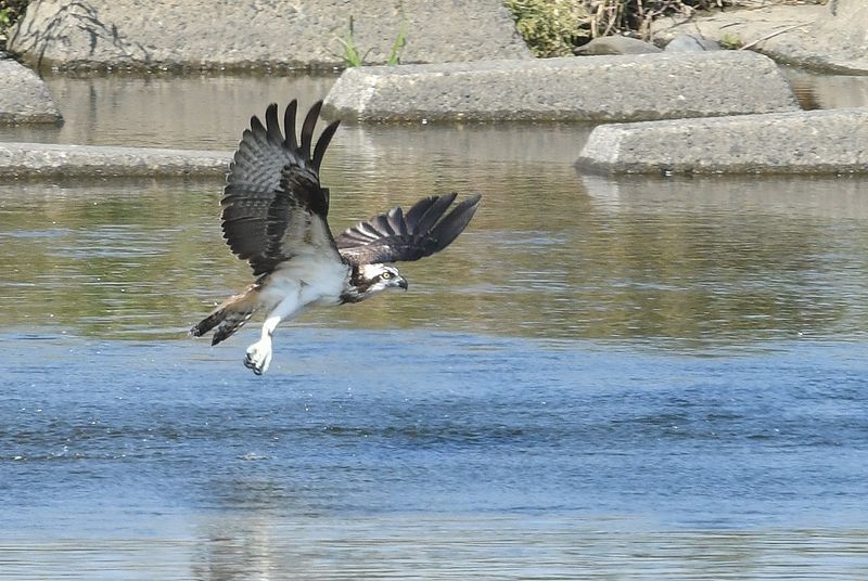 写風さんが滞在している間は通過が1回だけでしたが、12時に成鳥が飛来し1回で大きな鮎を捕まえ、対岸の河原で食事し上流に飛び去りました。