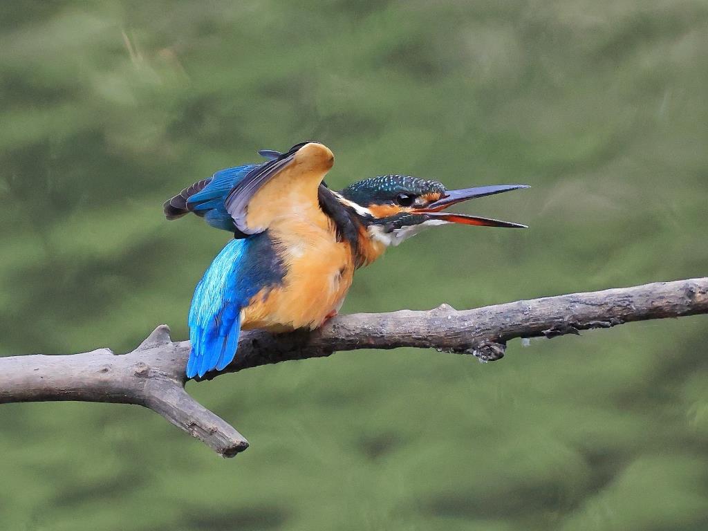 カワセミの飛び出し4作品は、魚を咥えて水面から飛び出した所を撮られ羽がブレて躍動感がありお見事です。