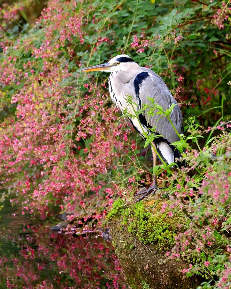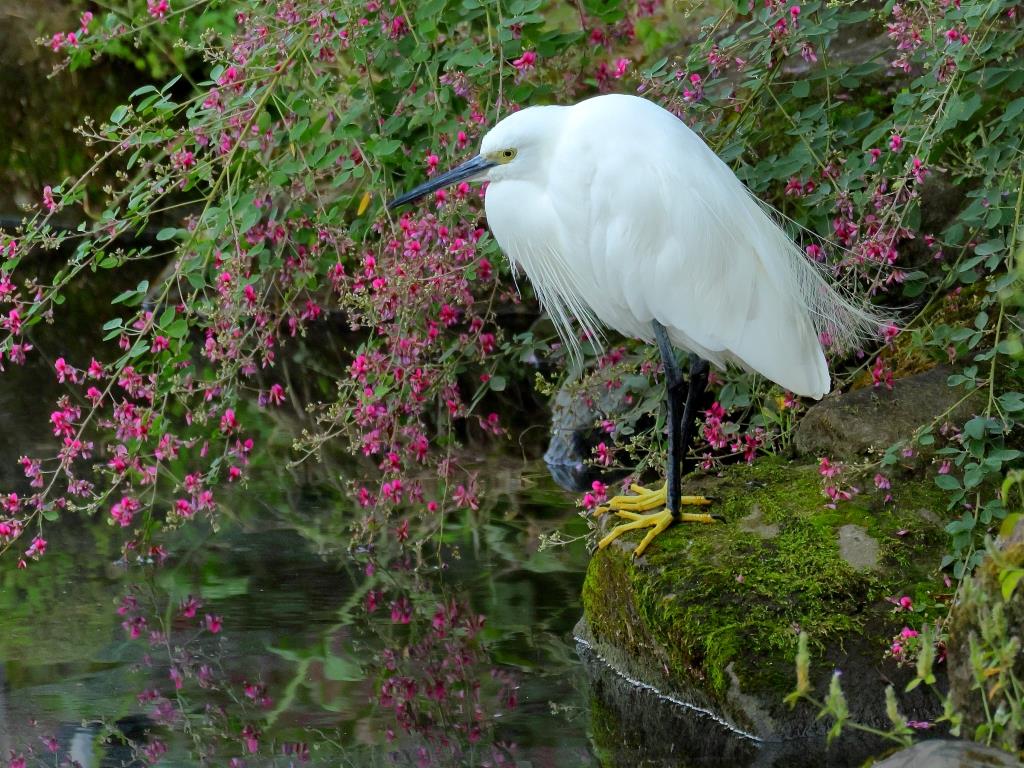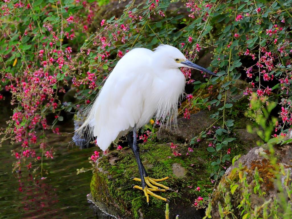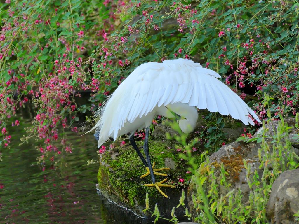 白鷺とアオサギ作品は、萩の花バックに撮られ、白鷺の羽を繊細に描写され、秋らしい作品です。