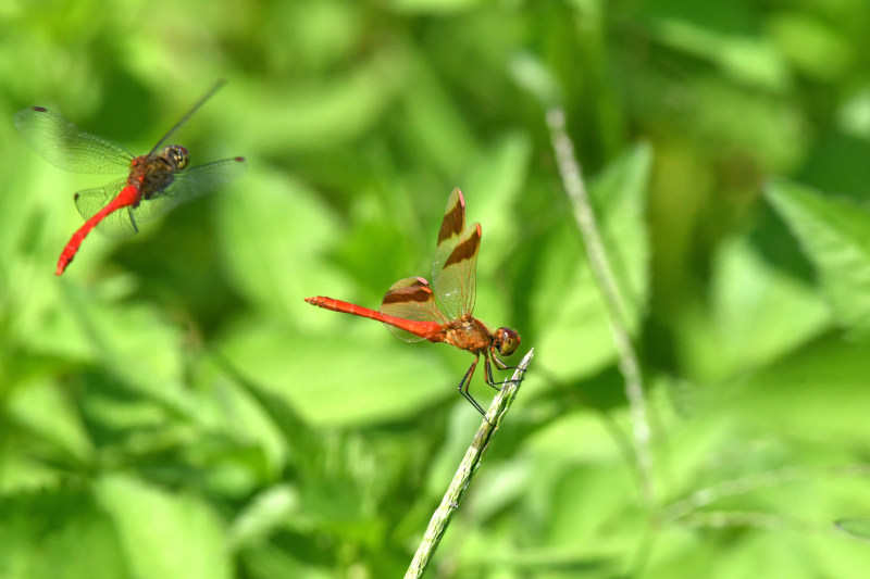最後の作品は、2種の赤トンボを捉え、バックが抜けて赤トンボが引き立っています。