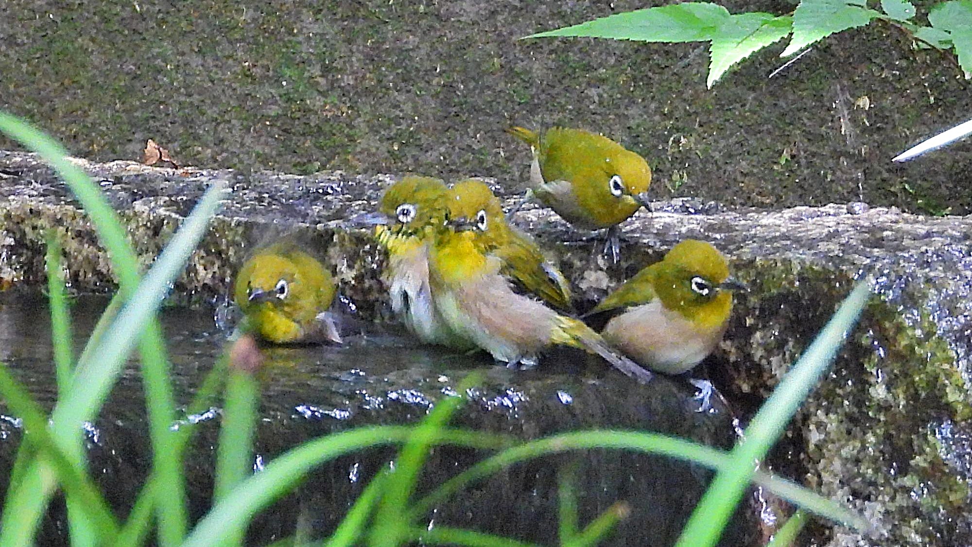 蒸し暑かったので湧水にヤマガラとメジロが飛来し、良い場面を撮られましたね。