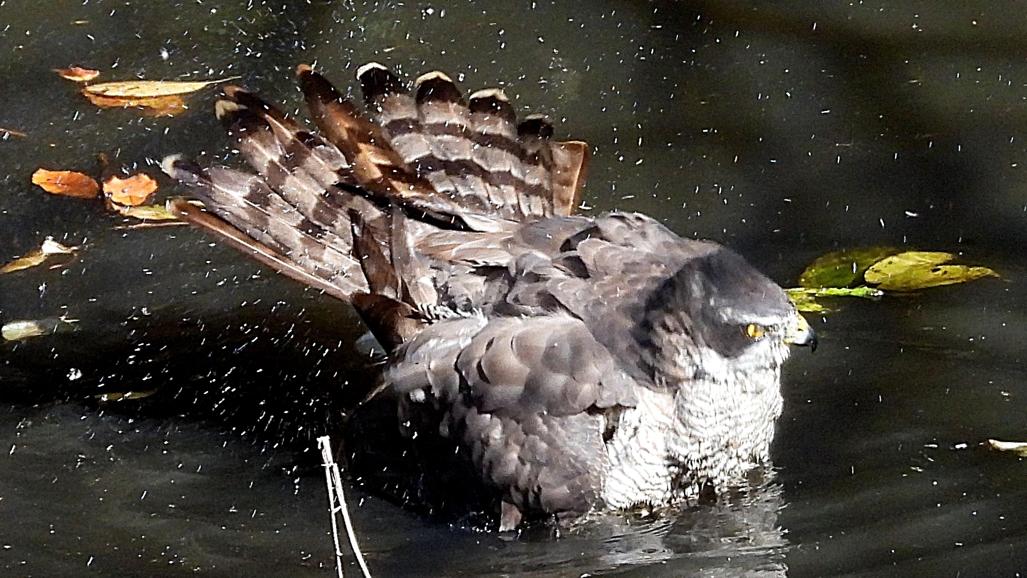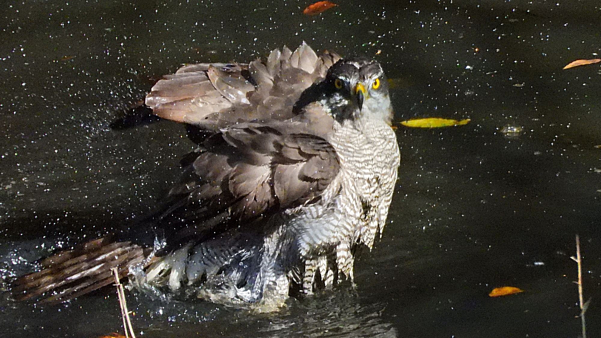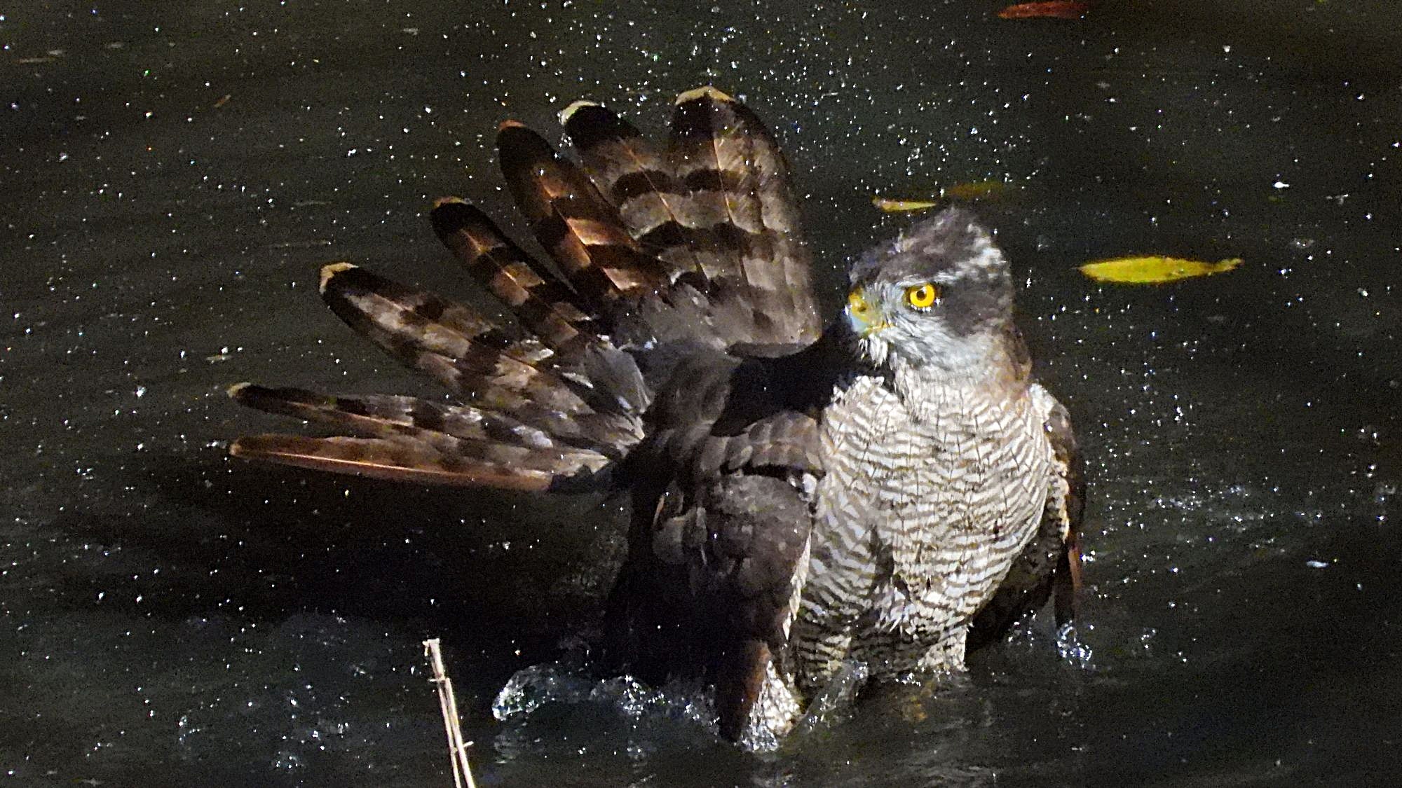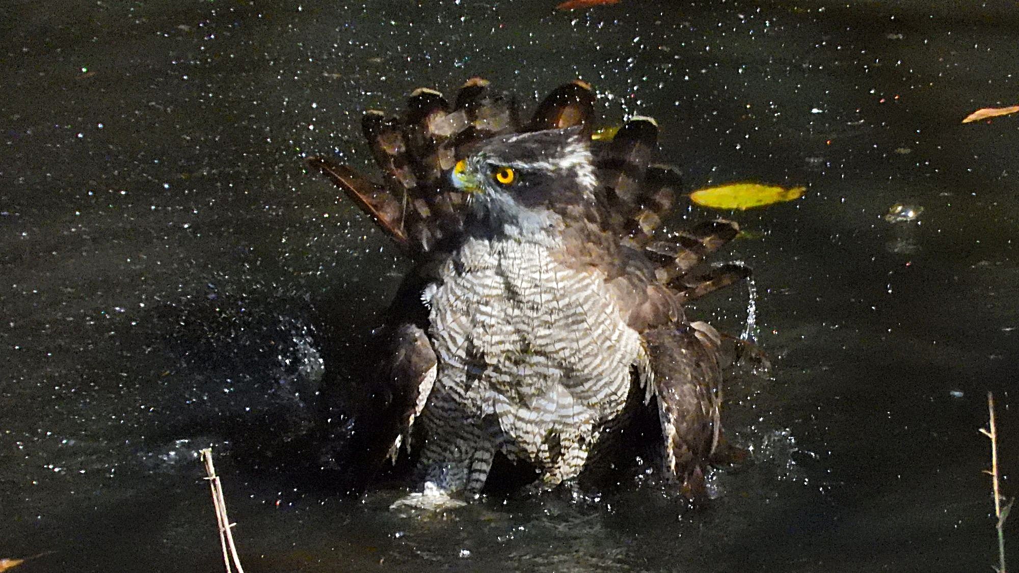 この数年、池でのオオタカの水浴びが見られなかっただけに珍しいです。