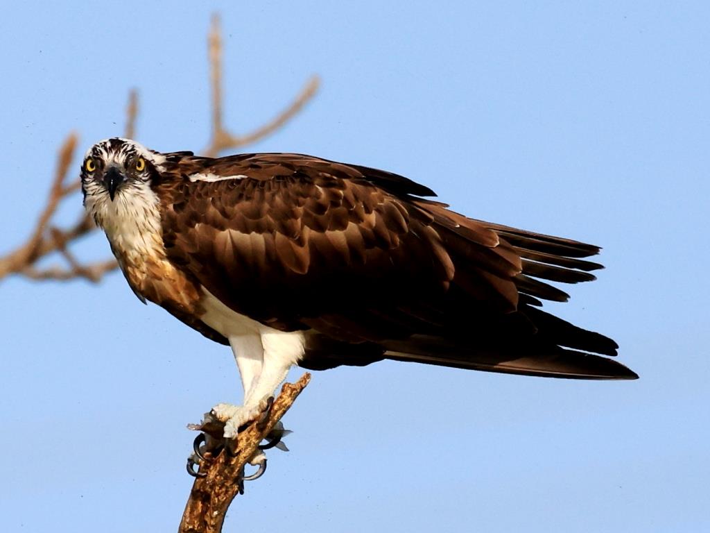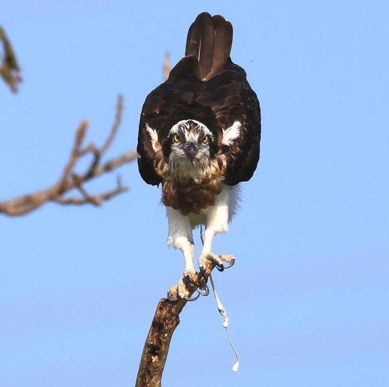 ミサゴの枝止まりの各作品は、青空バックで精悍な目に光が入って、特に正面顔の作品は尾を持ち上げ、こちらを睨め付けているようで迫力があります。