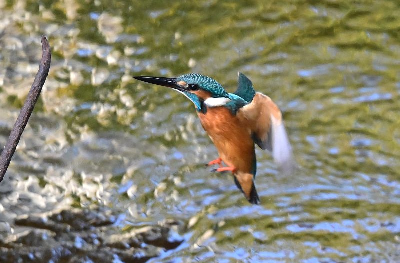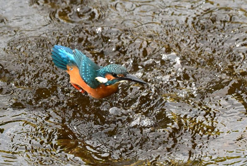 川に飛び込んでから、鮎を捕まえて目の前に飛来するまでを連続撮影された作品は、水中からの飛び出し場面は、水飛沫が上がって、鮎2匹を掴まえての飛び出し場面を撮られ、上空でブルブルして水飛沫が散って躍動感があります。