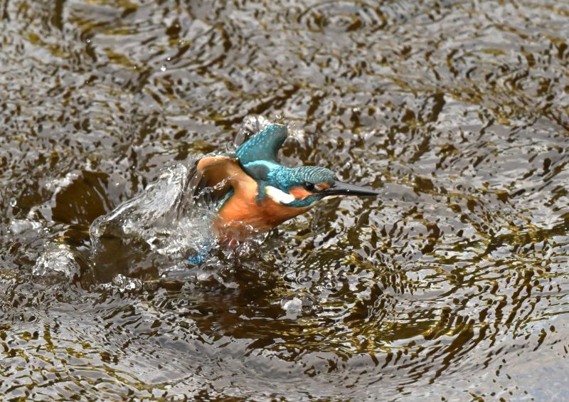 水中そして川からの飛び出し場面は、大きな羽を広げてスケールが大きな作品です。