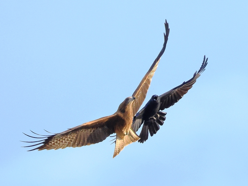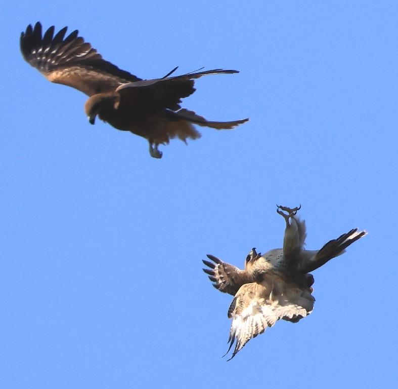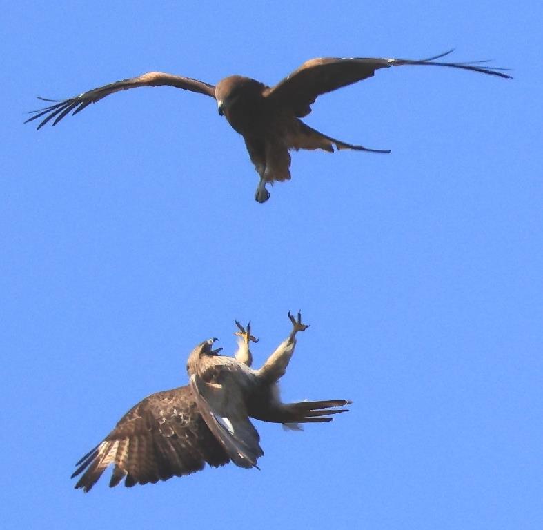 トビ2羽のバトルは、逆さになってのバトルで目に光が入ってお見事です。
