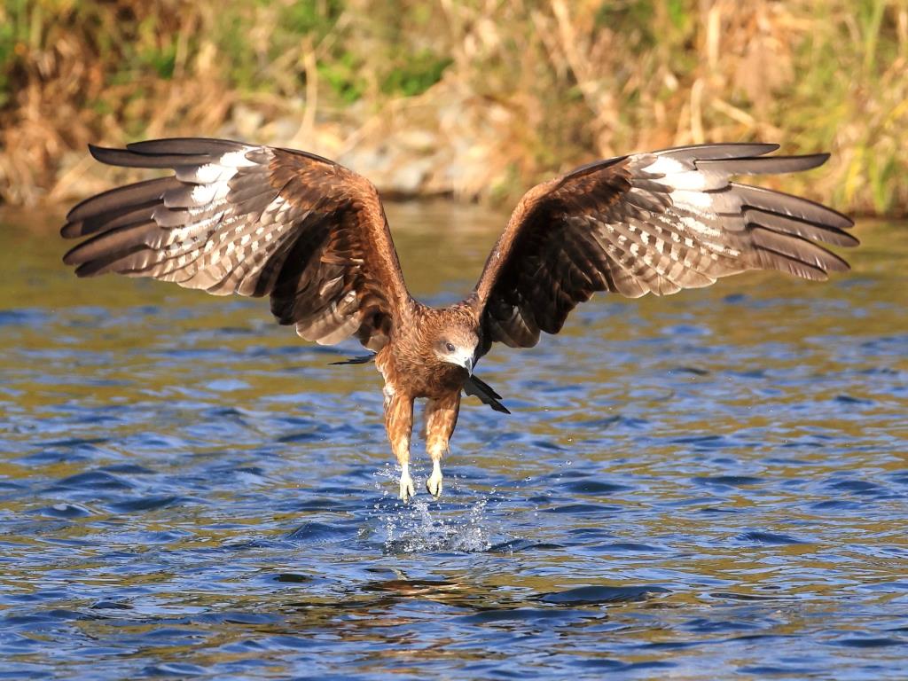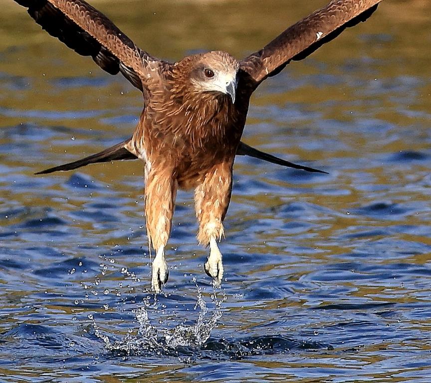 トビの飛翔3作品は、水面をタッチして水飛沫が上がって、猛禽らしくない優しい目に光が入って躍動感があります。