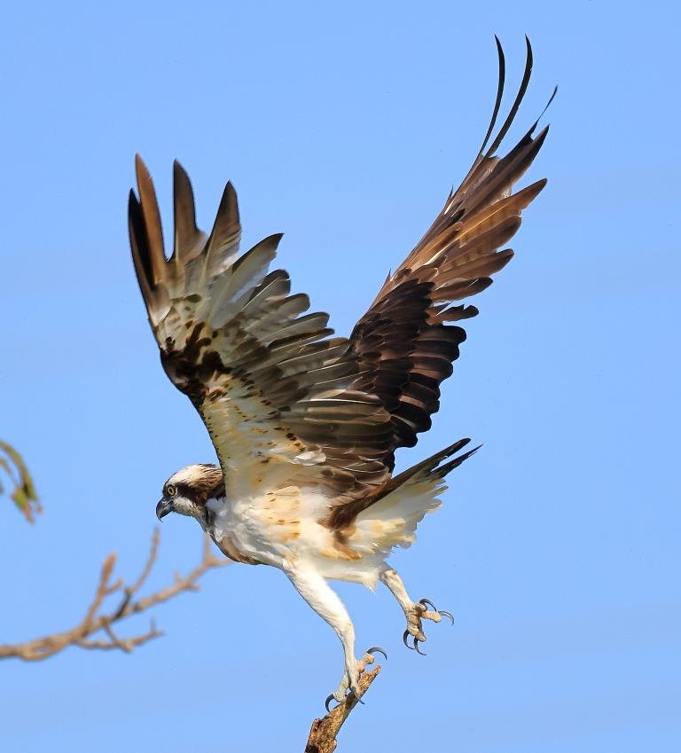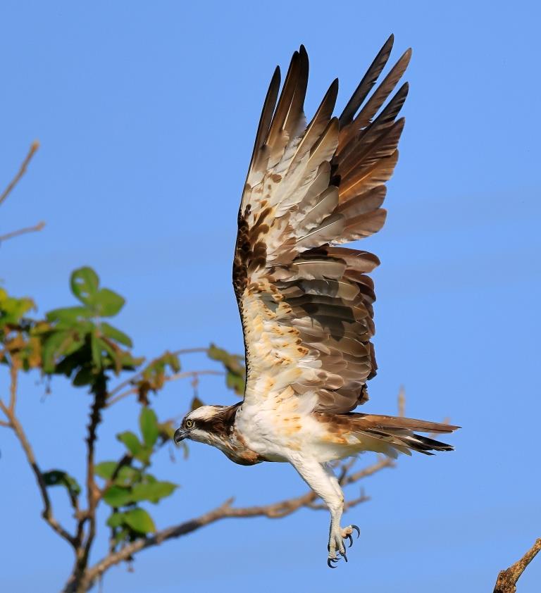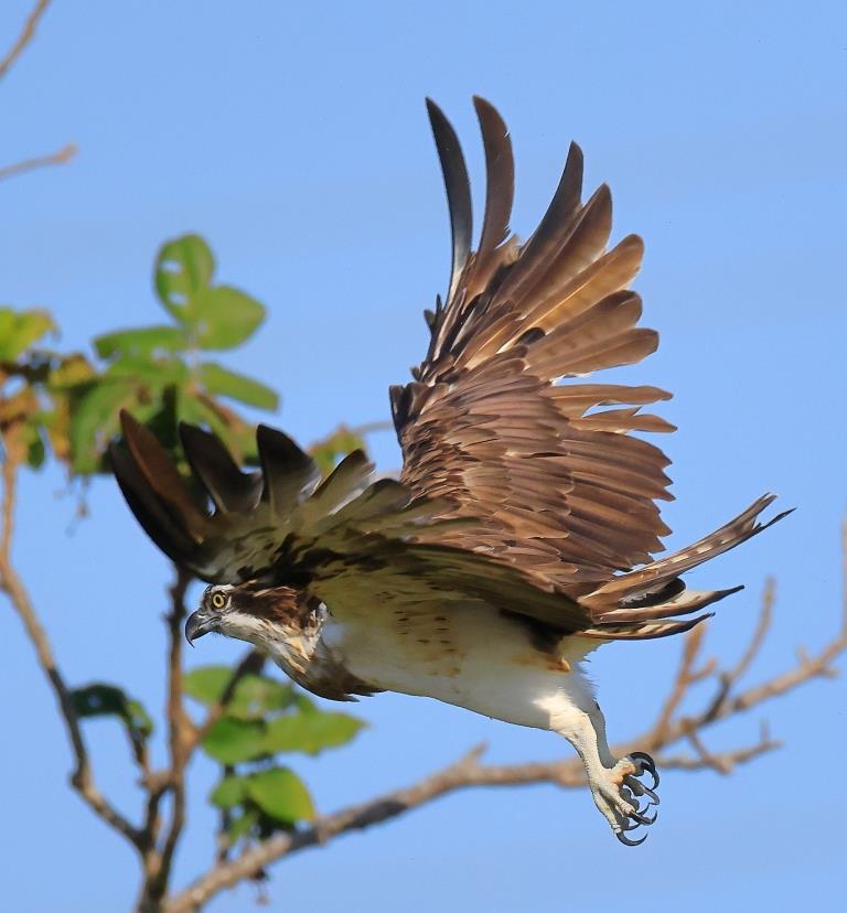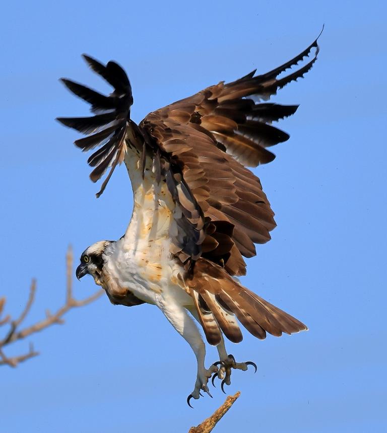 今日は雲一つない青空で、ミサゴ撮影日和だっただけに、飛翔場面と枝からの飛び出し、飛び着き場面はミサゴがとても映えた作品の連続でお見事です。