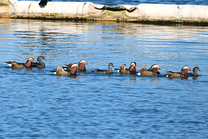 オシドリも15時頃になると約10羽が行動を開始しています。