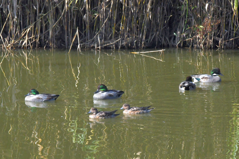 ミサゴポイントは暫く待ったが気配なし、そこで池まで移動したが若ガンは留守で、待っていたカモ達を撮った。オシドリも居たが影ばかりで