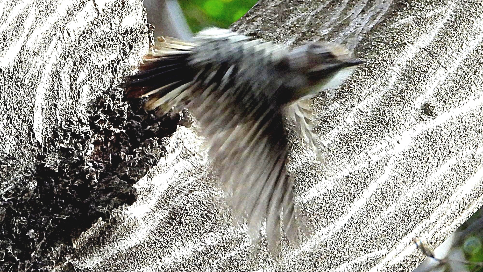 薄暗い空抜けの高い木で何処から構えても枝被りで首が痛くなるほど時間を掛けて撮りましたがいい画像を得られませんでした(画像1〜画像3)