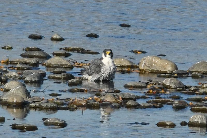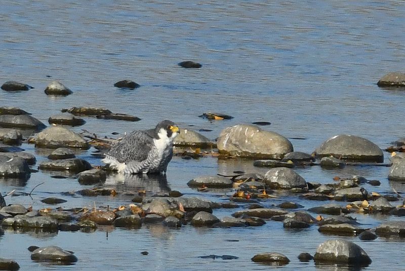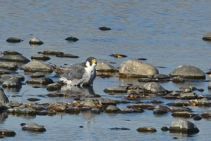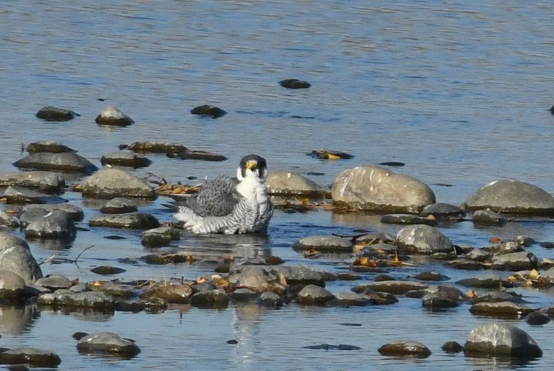 中州にはハヤブサが水浴びをして、ユリカモメ約100羽は水を飲んでいました。