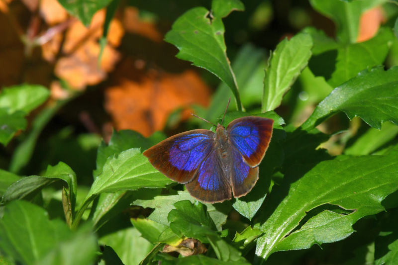 ムラサキツバメとムラサキシジミの開翅を比較すると、ムラサキシジミの方がとても鮮やかな紫色で、綺麗ですね。