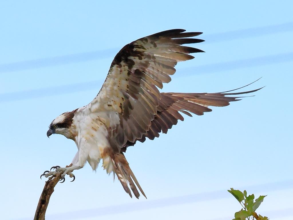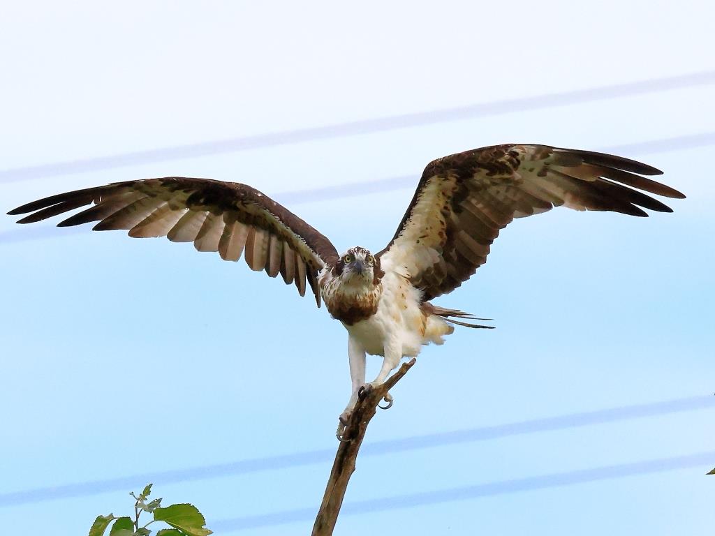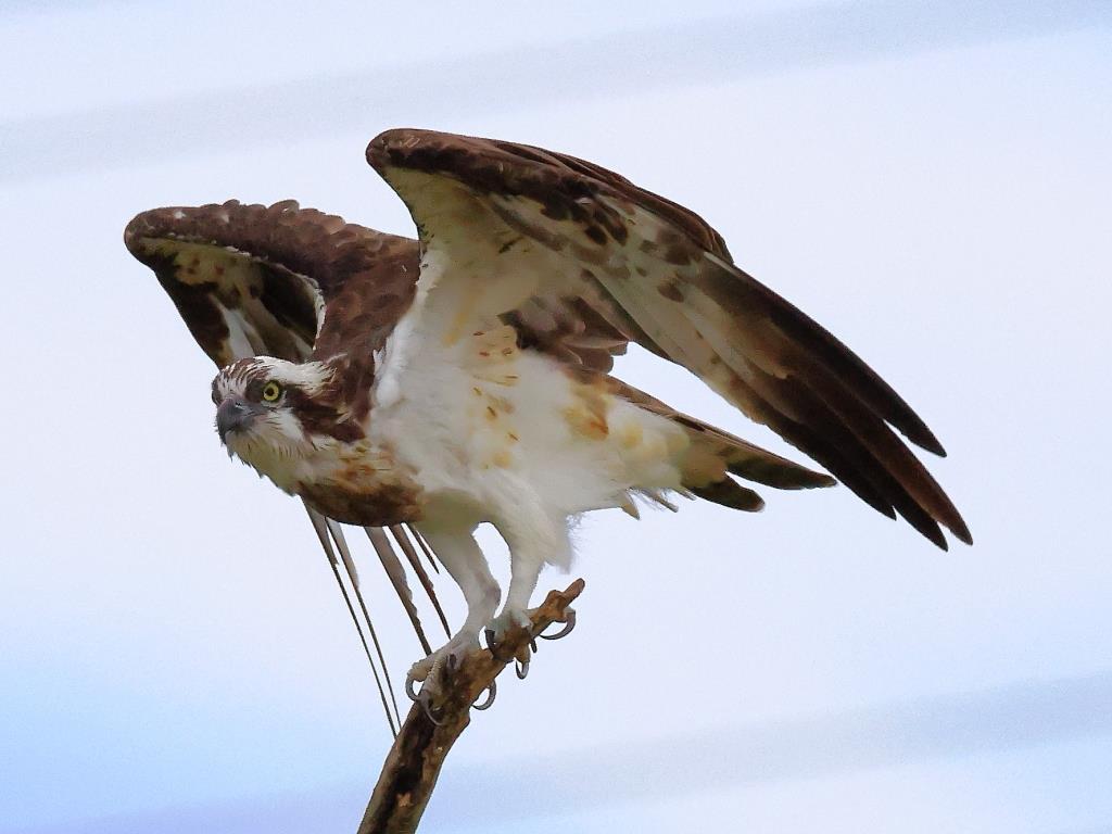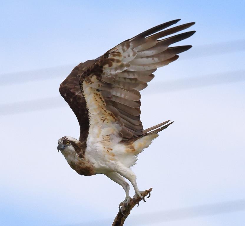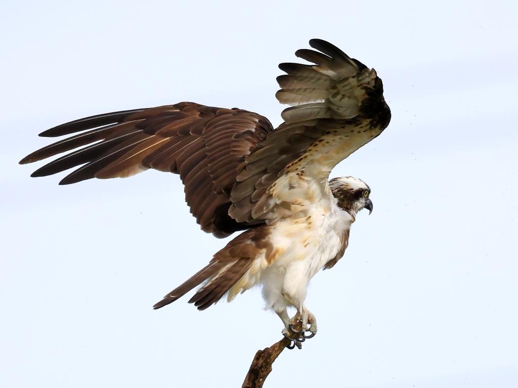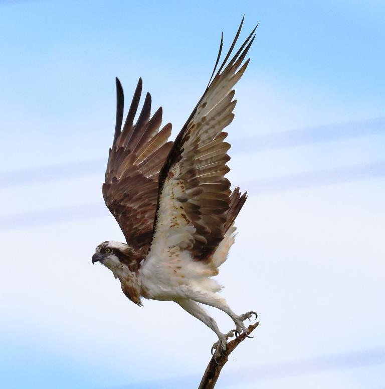 明るいバックの枝からの飛び出し、飛び出しを撮られミサゴが引き立っています。