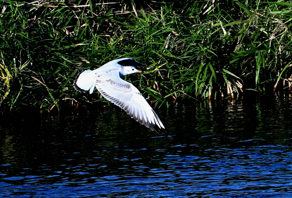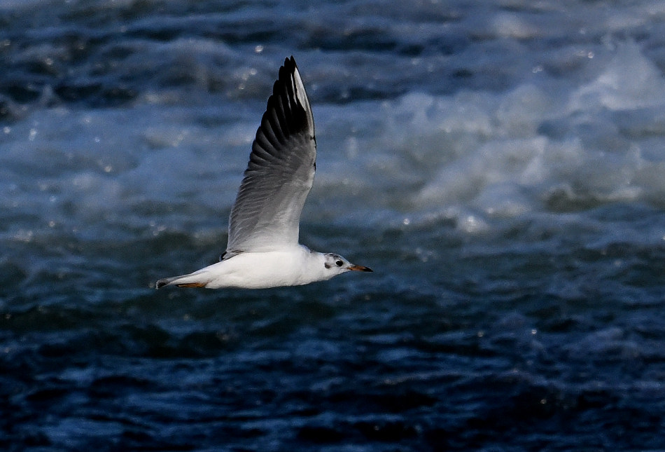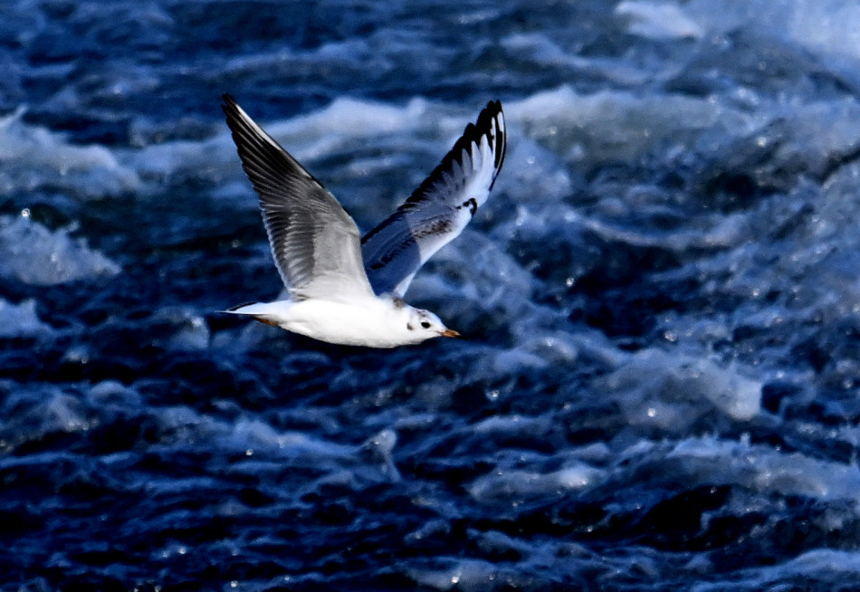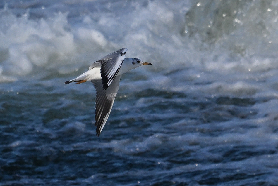 今日は青空でしたので、水面が濃紺で飛翔するユリカモメが引き立っています。