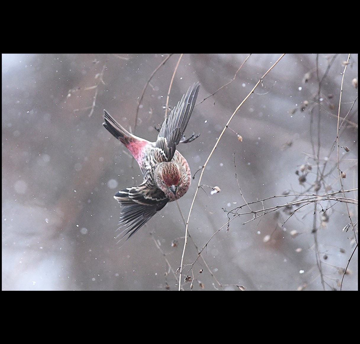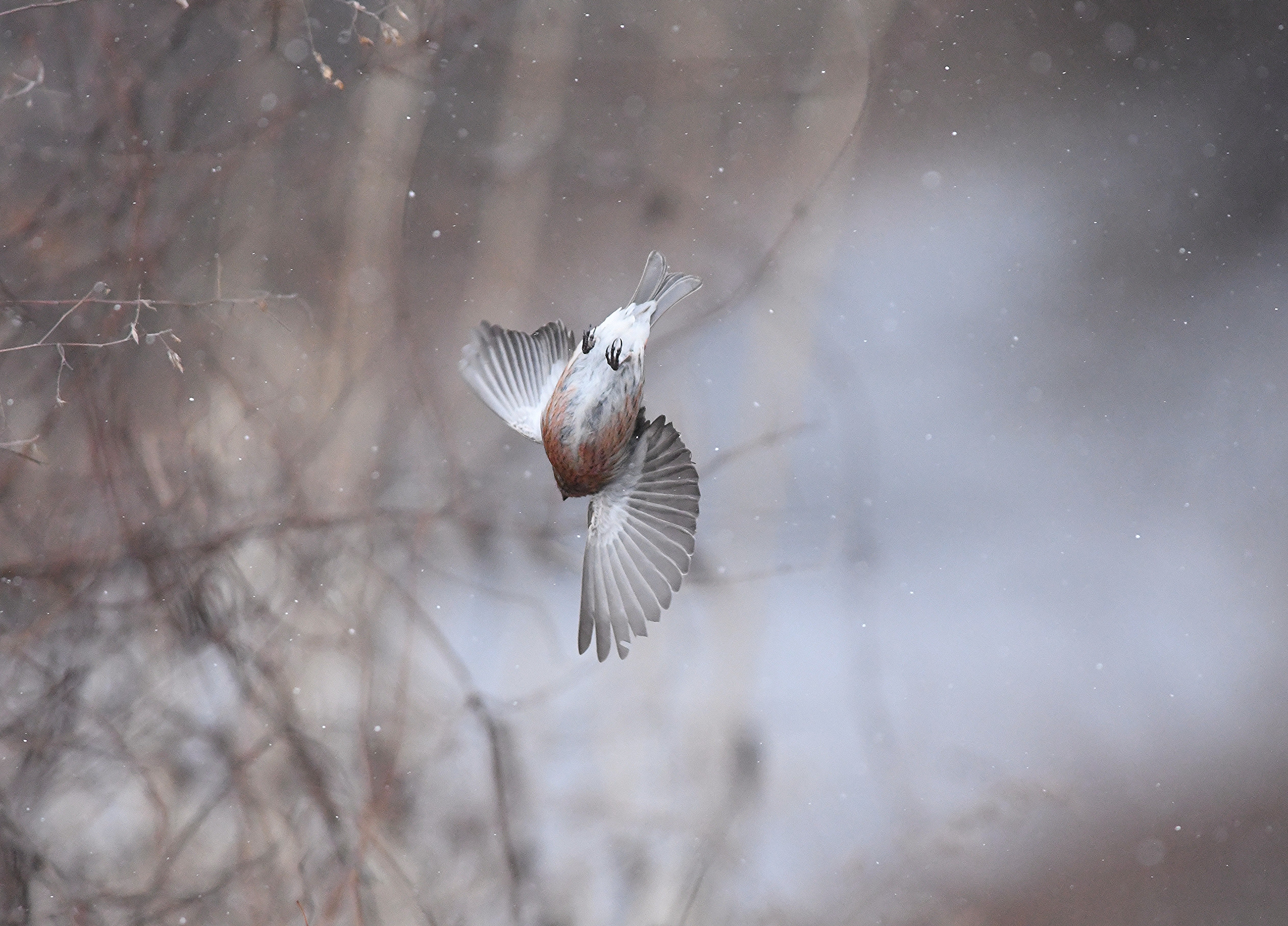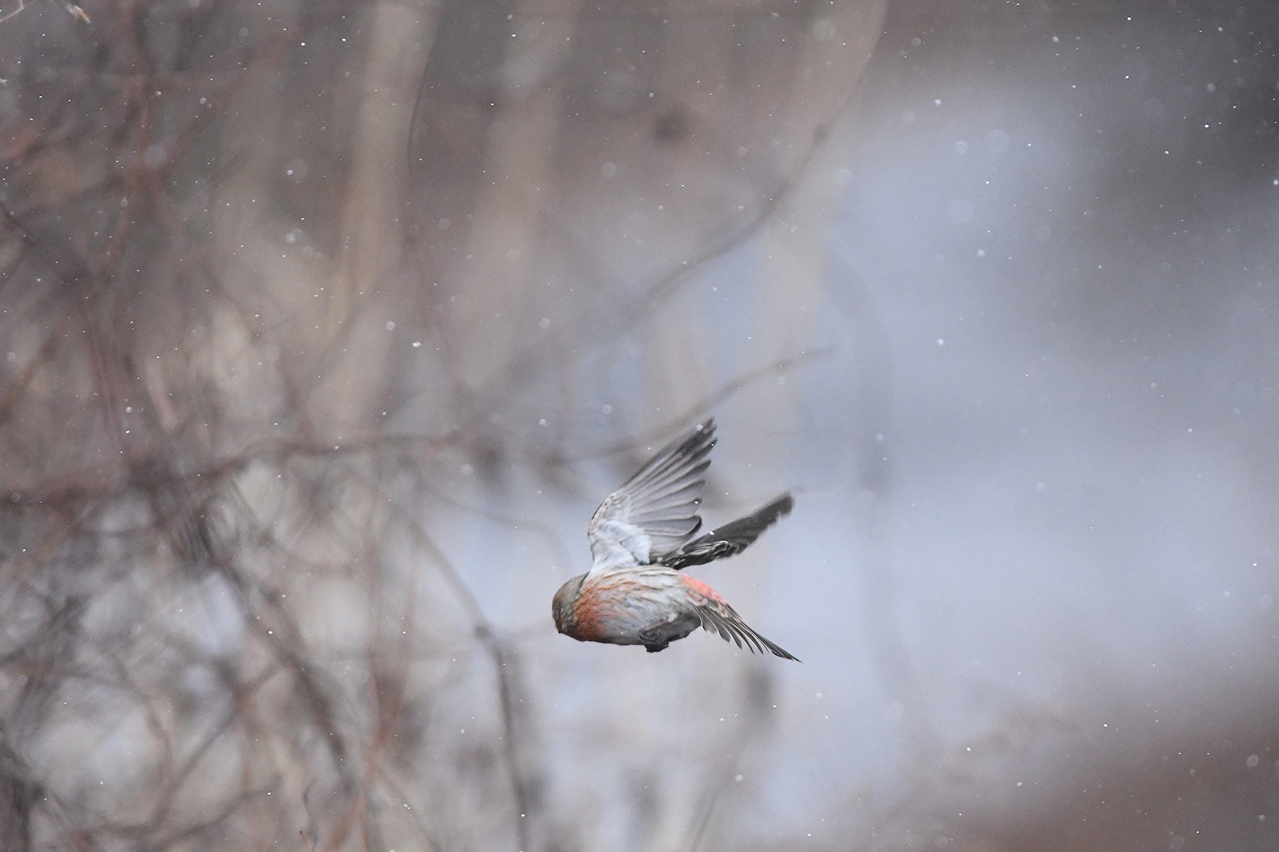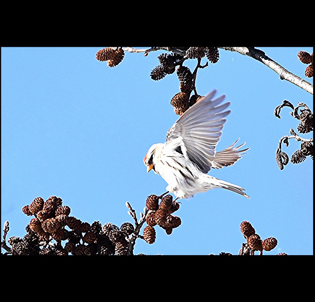 今年最後の撮影はベニヒワです。来年に向かい飛び出そう!