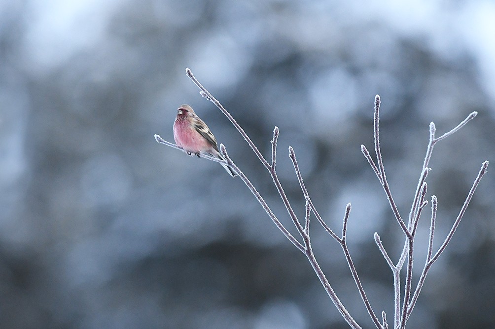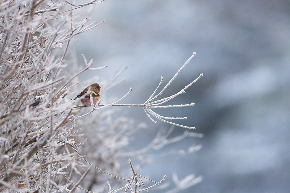 寒い寒い早朝、霧氷に乗ってくれた