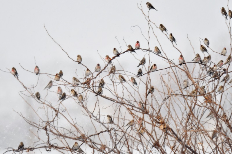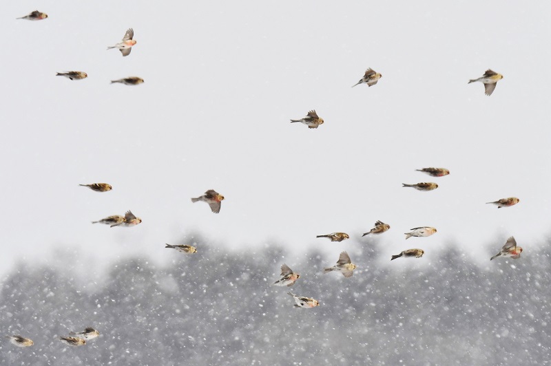 雪のベニヒワと晴れた日のベニヒワ達です