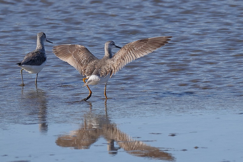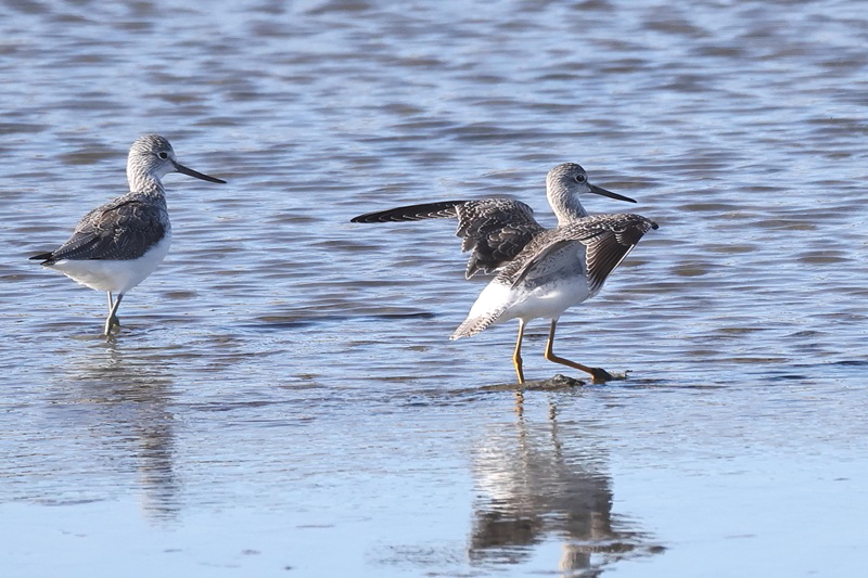 一緒に居るのは、アオアシシギです。