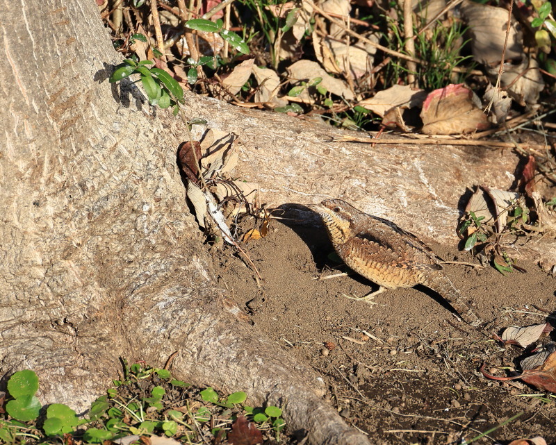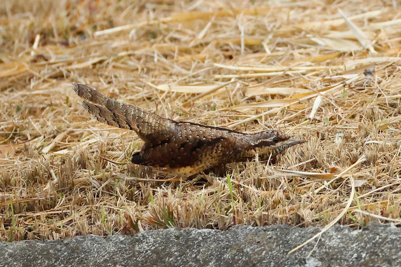 アリスイは長い舌を出してアリを捕食しますが今回は控えめの舌出しでした。
