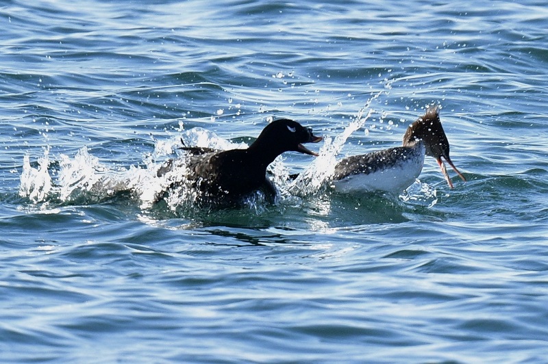 ウミアイサが潜水中のニアミスでビロキンが怒ってます