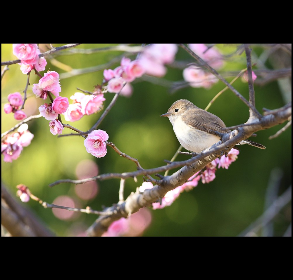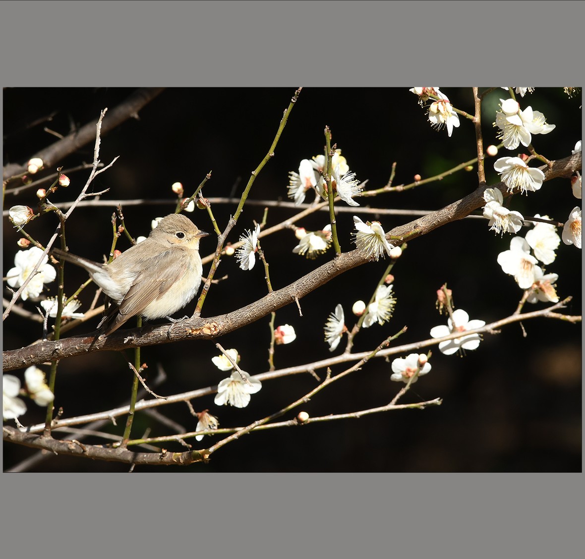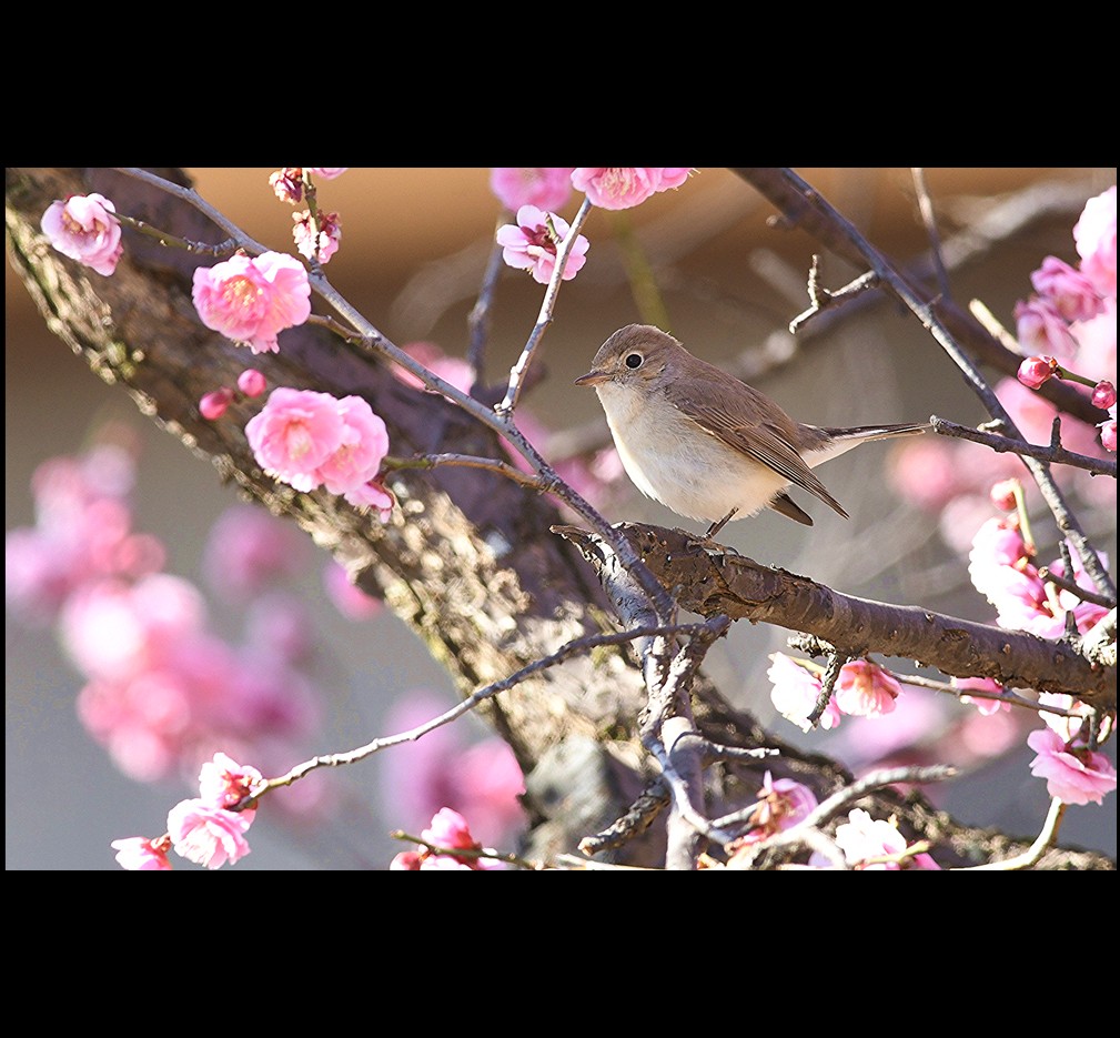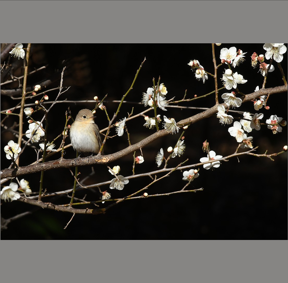 今年も梅の花にニシオジロビタキが