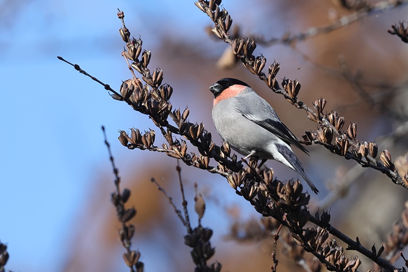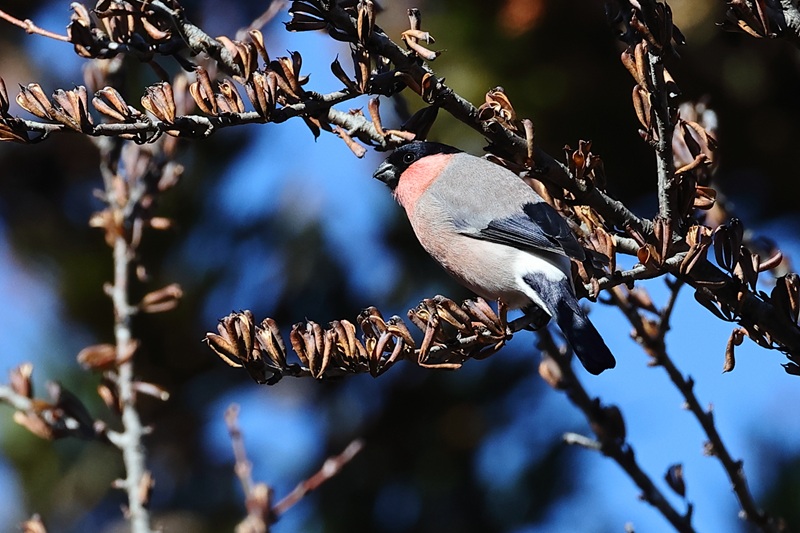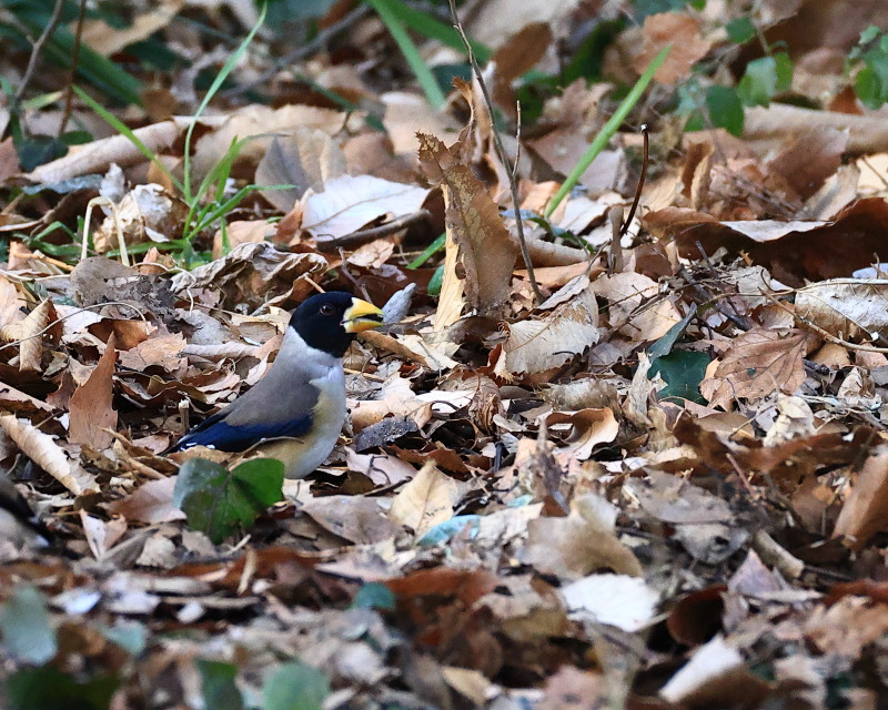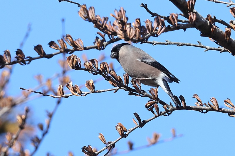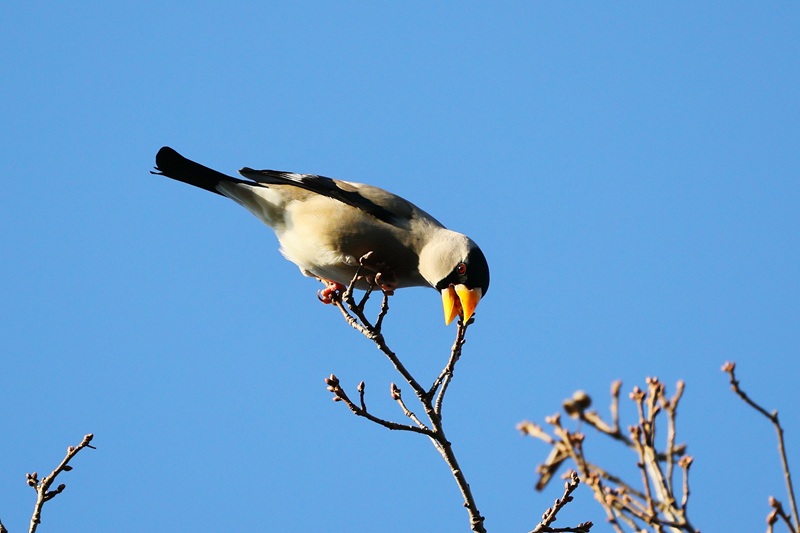撮影していると止まっている木の下に降りました。よく見ると黒い木の実を食べています。