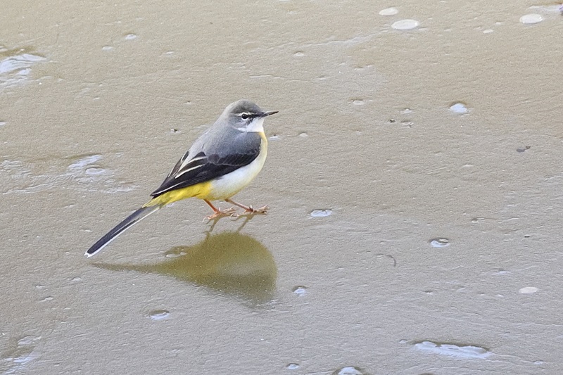 撮影の帰りに立ち寄った公園では池の一部が凍っていました。氷の上ではキセキレイが餌を探していました。