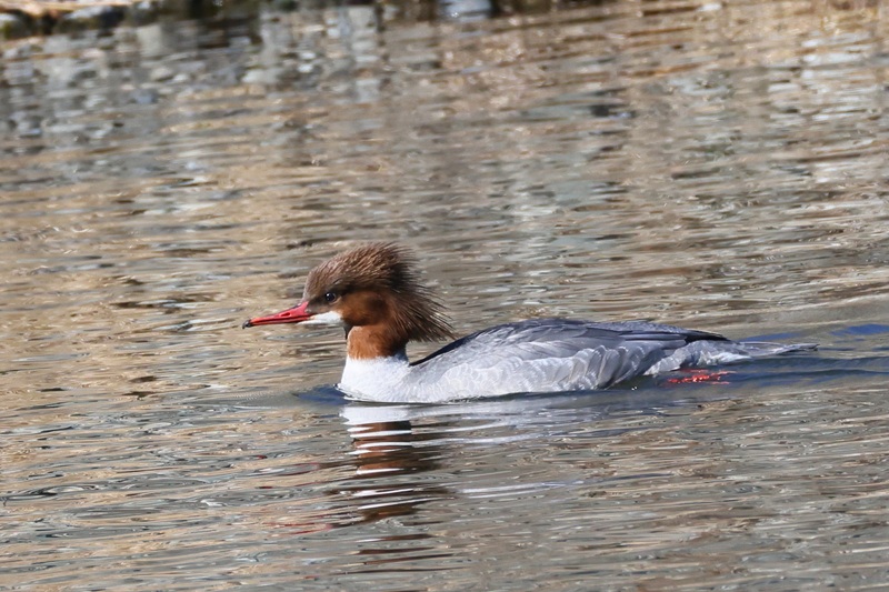 大川の堰で ヨシガモ/カンムリカイツブリ/カワアイサが撮れました。