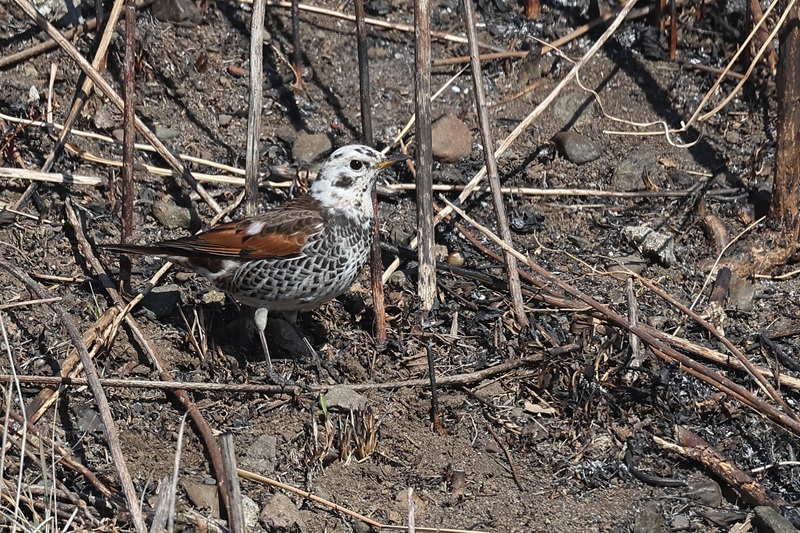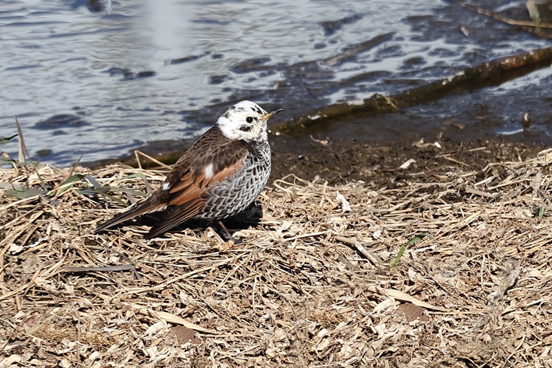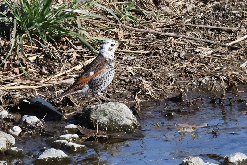 頭が白いと別な鳥さんに見えてきます。何羽かの普通のツグミと一緒に行動していました。