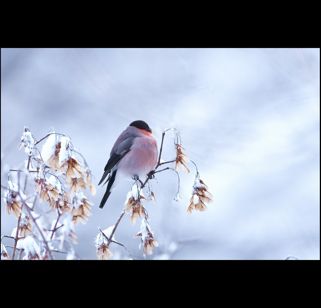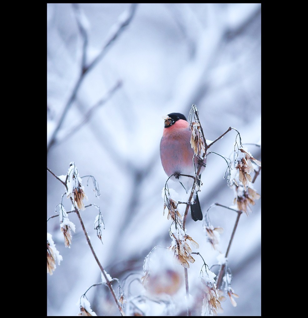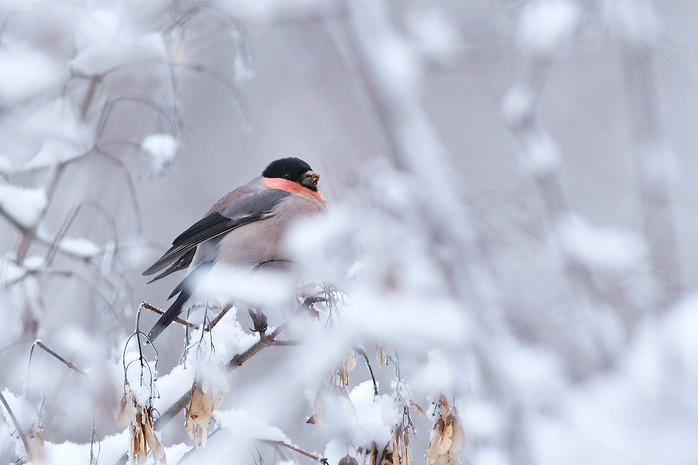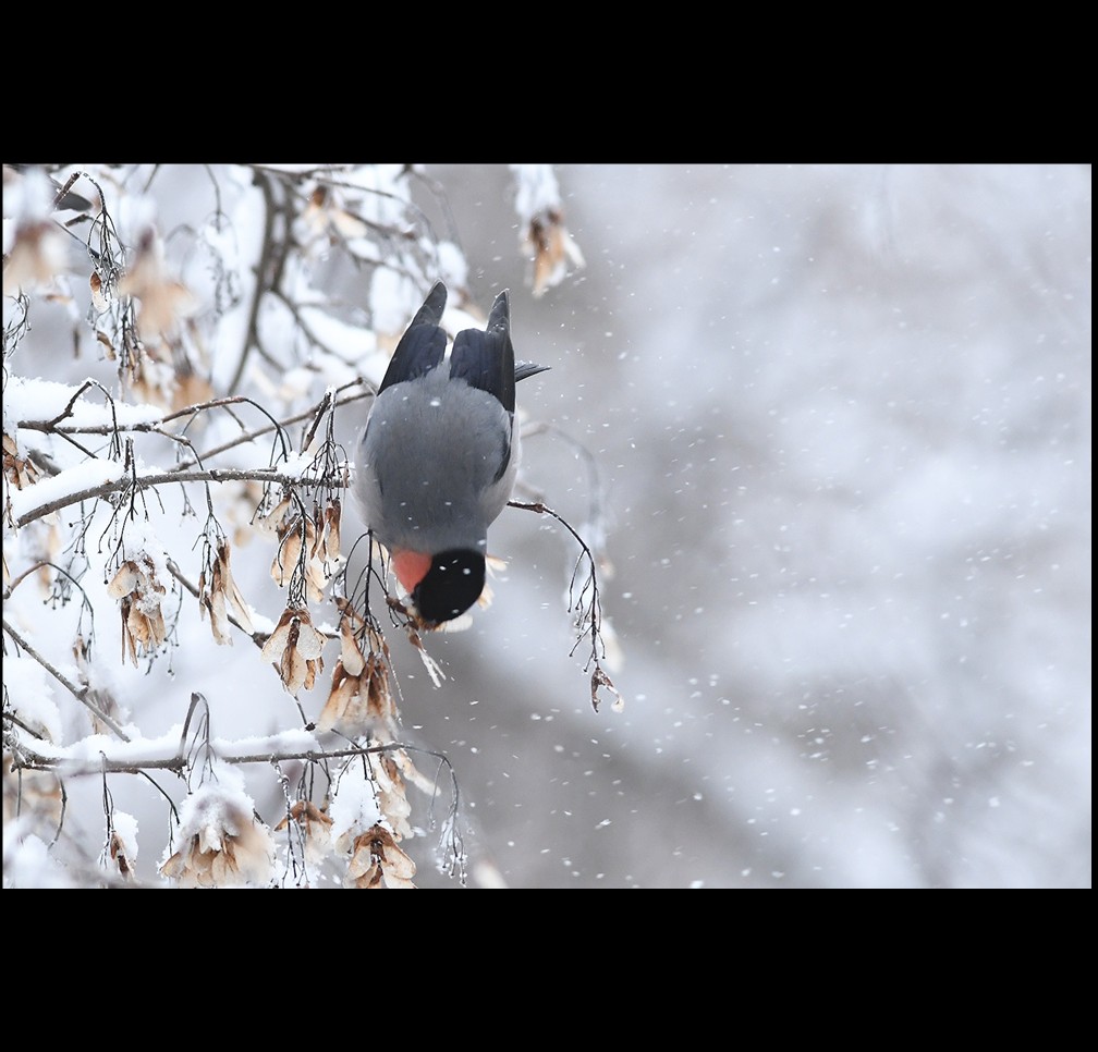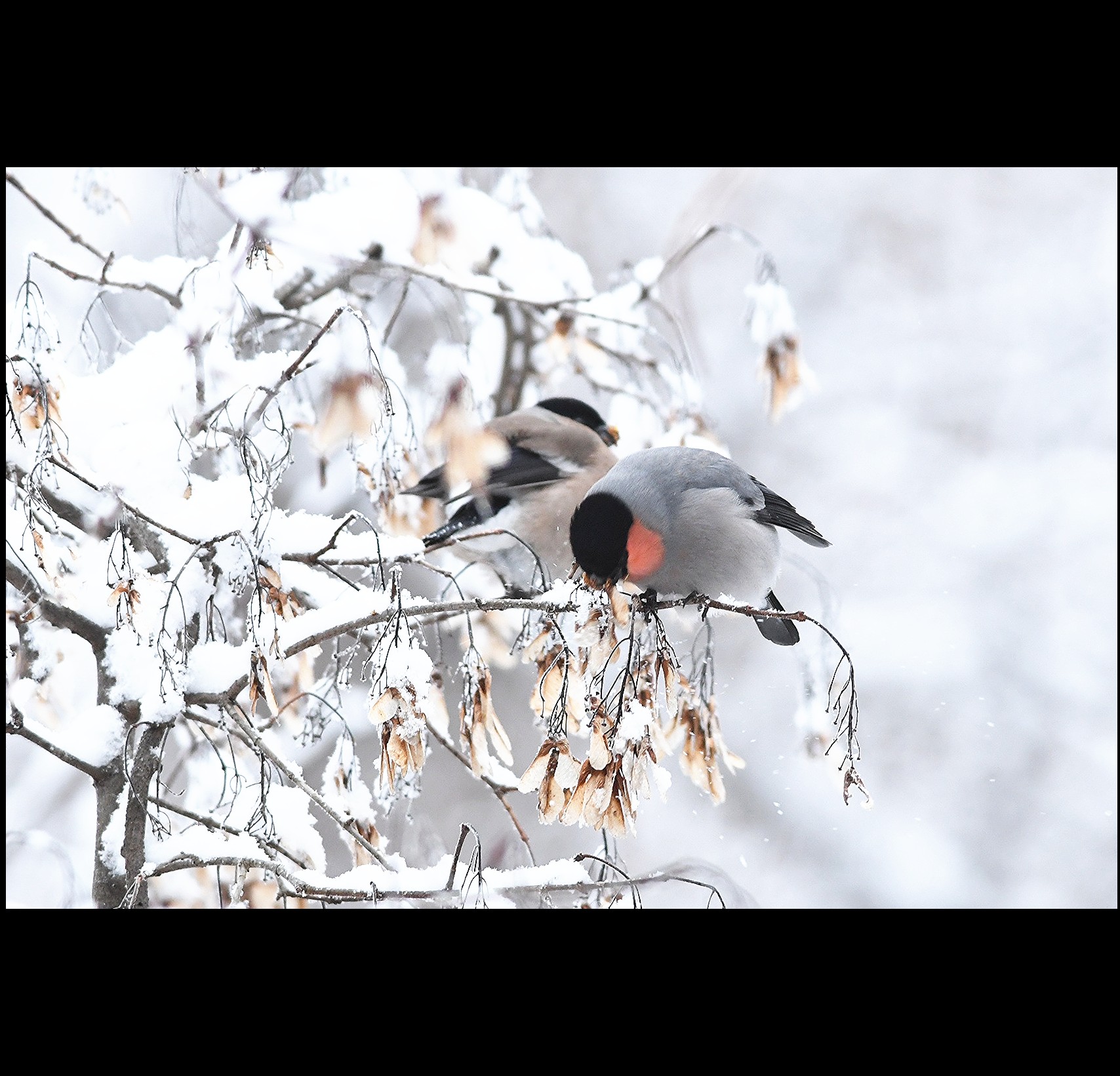 大雪の日のアカウソ、ウソ♂♀です。