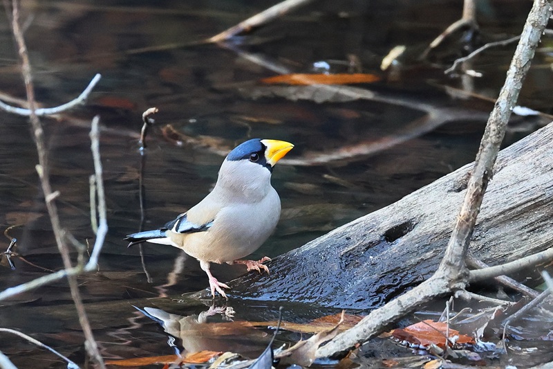 コイカルが居るとゆう公園に朝早くから行きましたがコイカルには会えませんでした池にいたトモエガモ/オシドリ/水飲みに来たイカル撮りました。