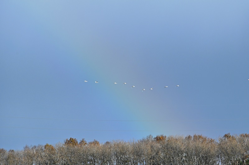 昨日も雨、雪で不安定なお天気でしたが虹が見られました