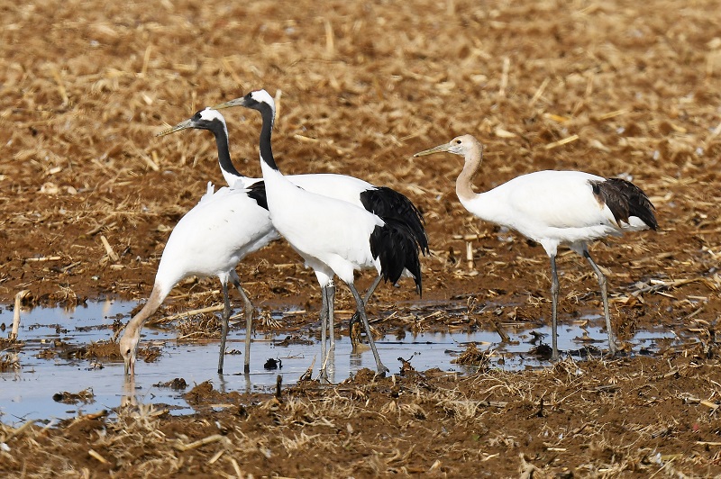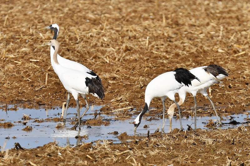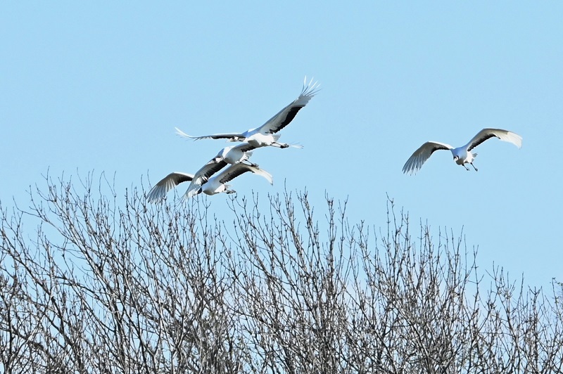 道路にタンチョウが4羽居たので移動待ちしてたら