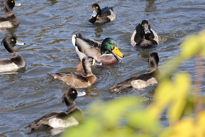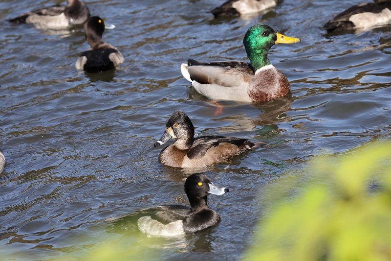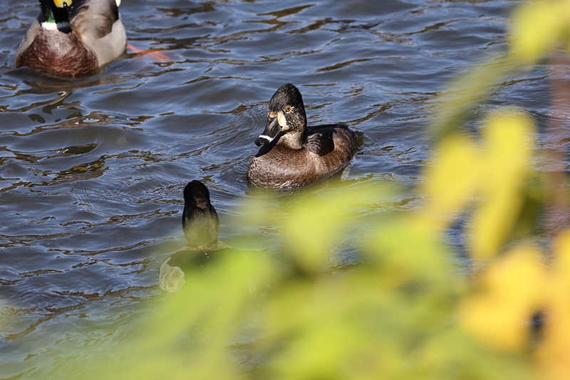 キンクロハジロの群れと一緒に今年も来てくれたクビワキンクロです。