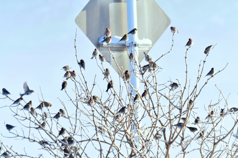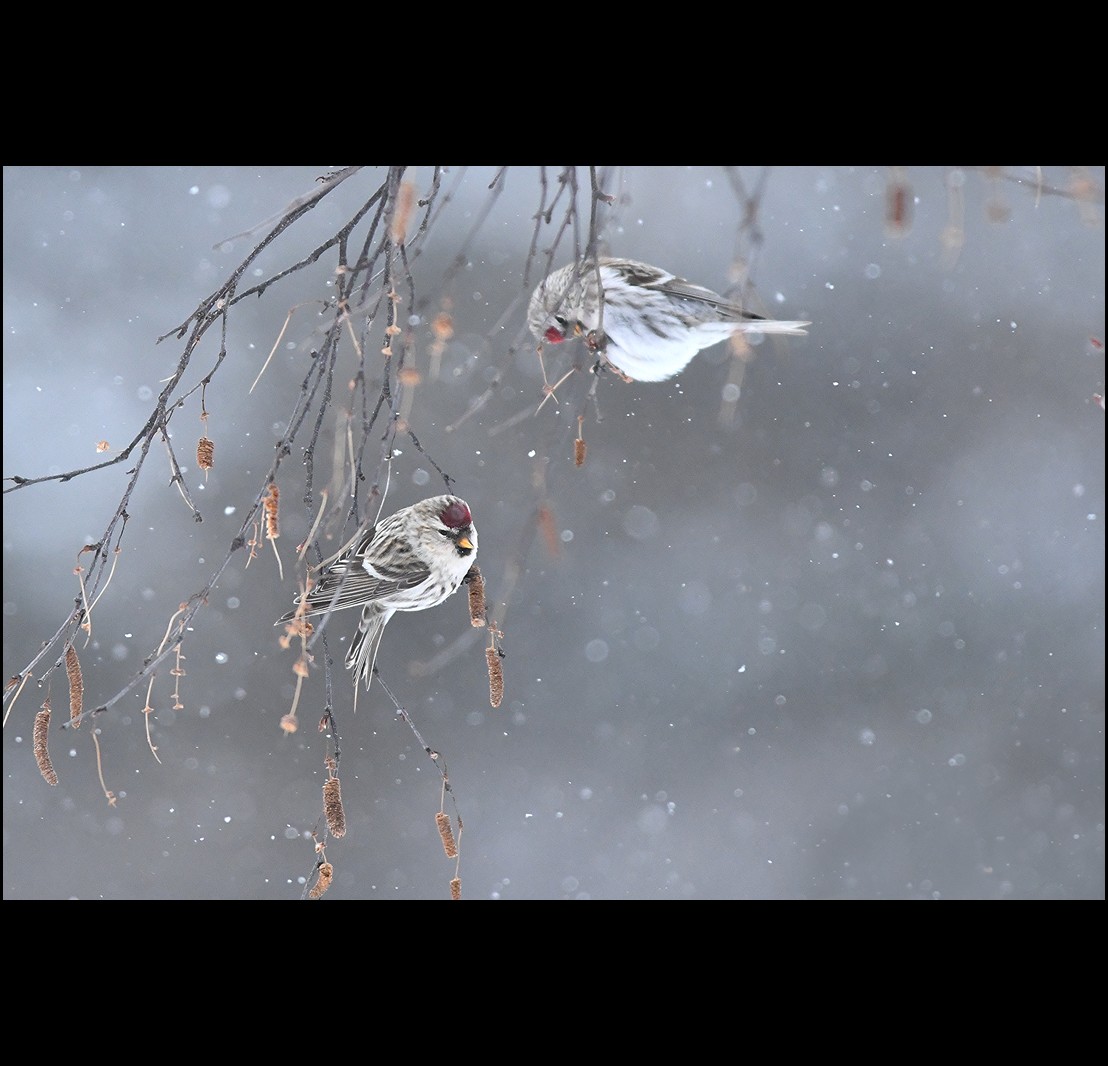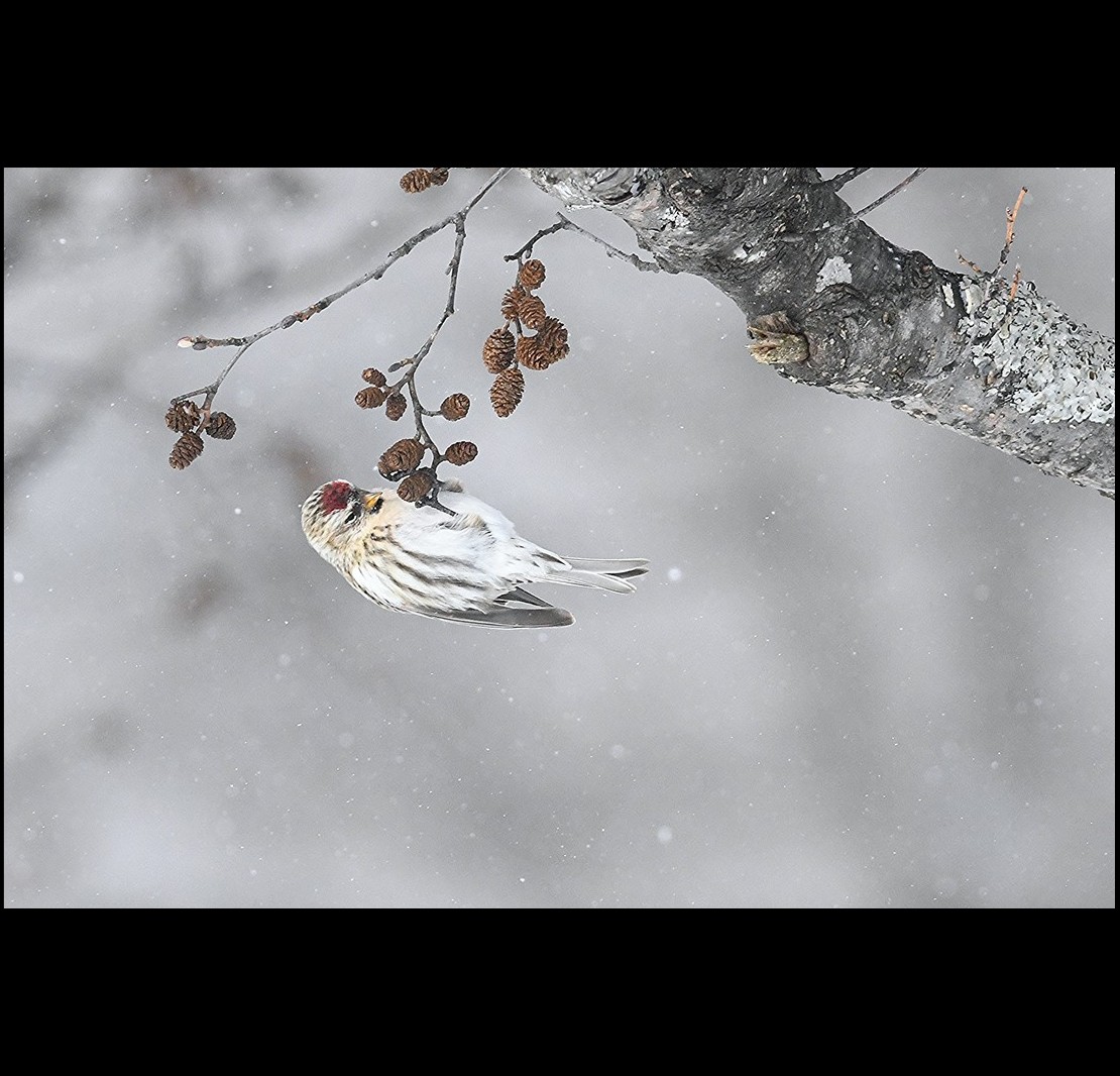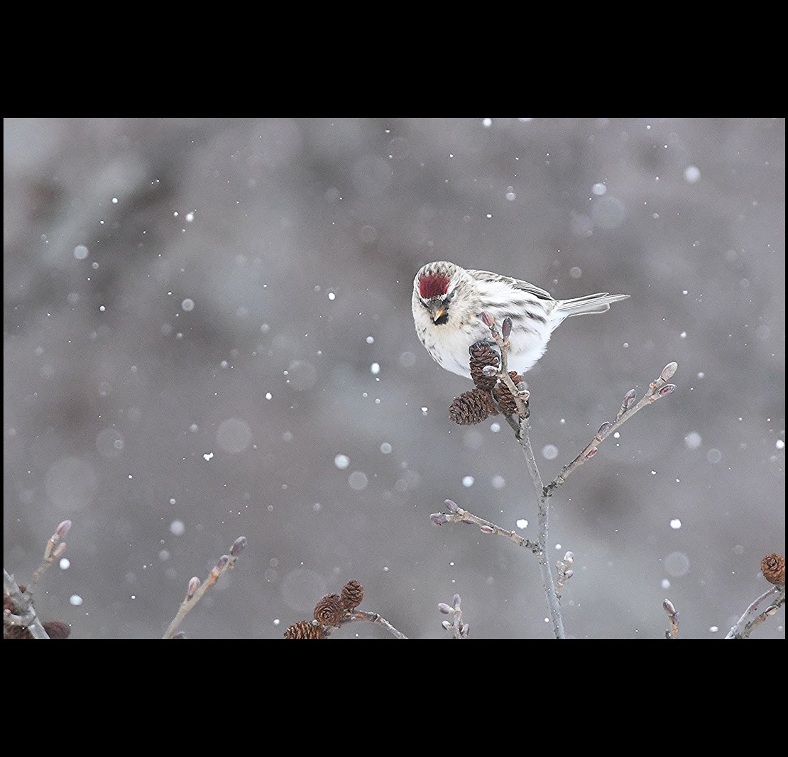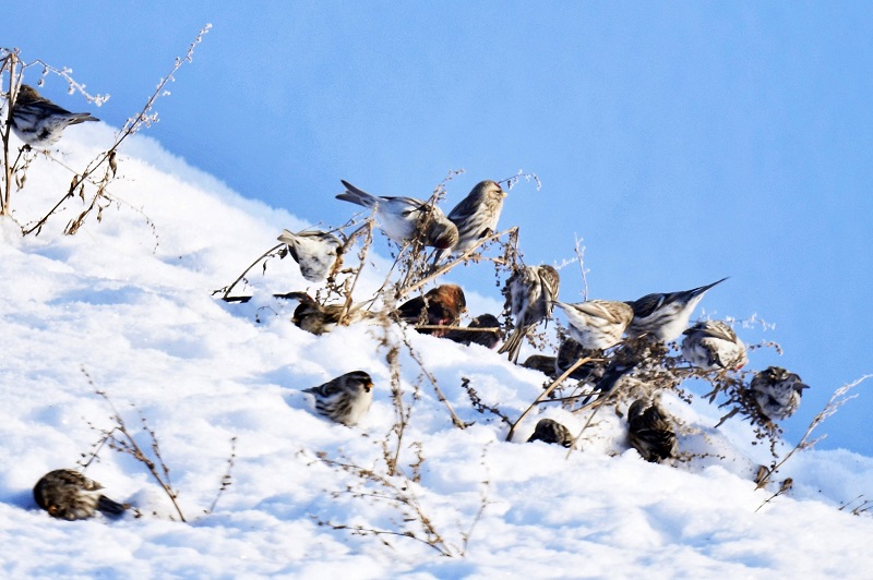 大雪の日にベニヒワの群れと一緒に飛んで来た