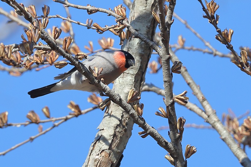 この公園でウソに会ったのは初めてです。1羽だけで木の実を食べていました。