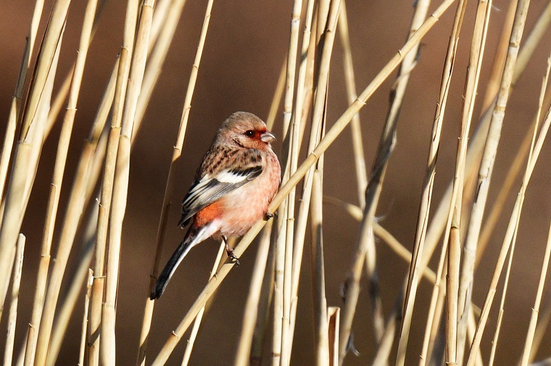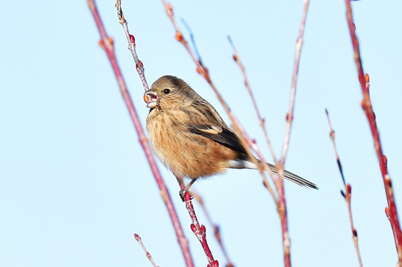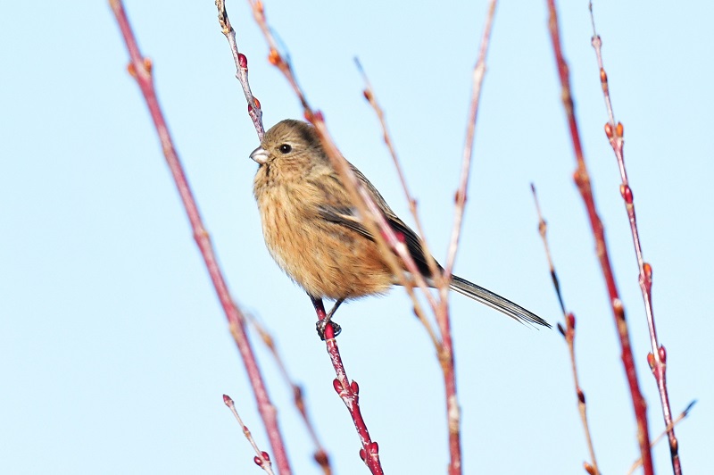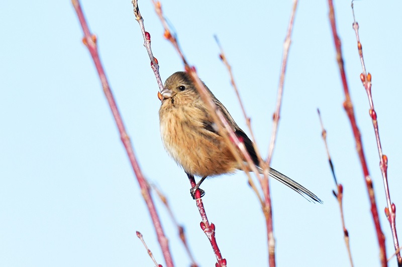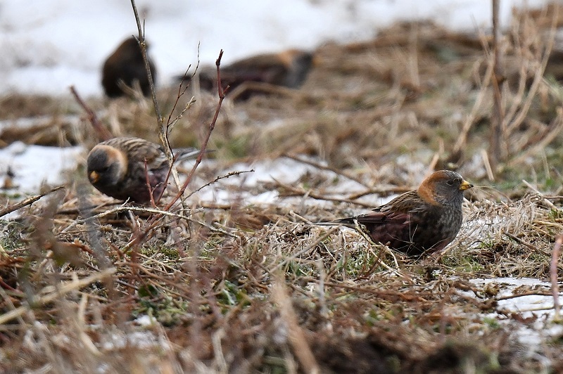 雪が少ない所には、ベニマシコも新芽を食べに集まります
